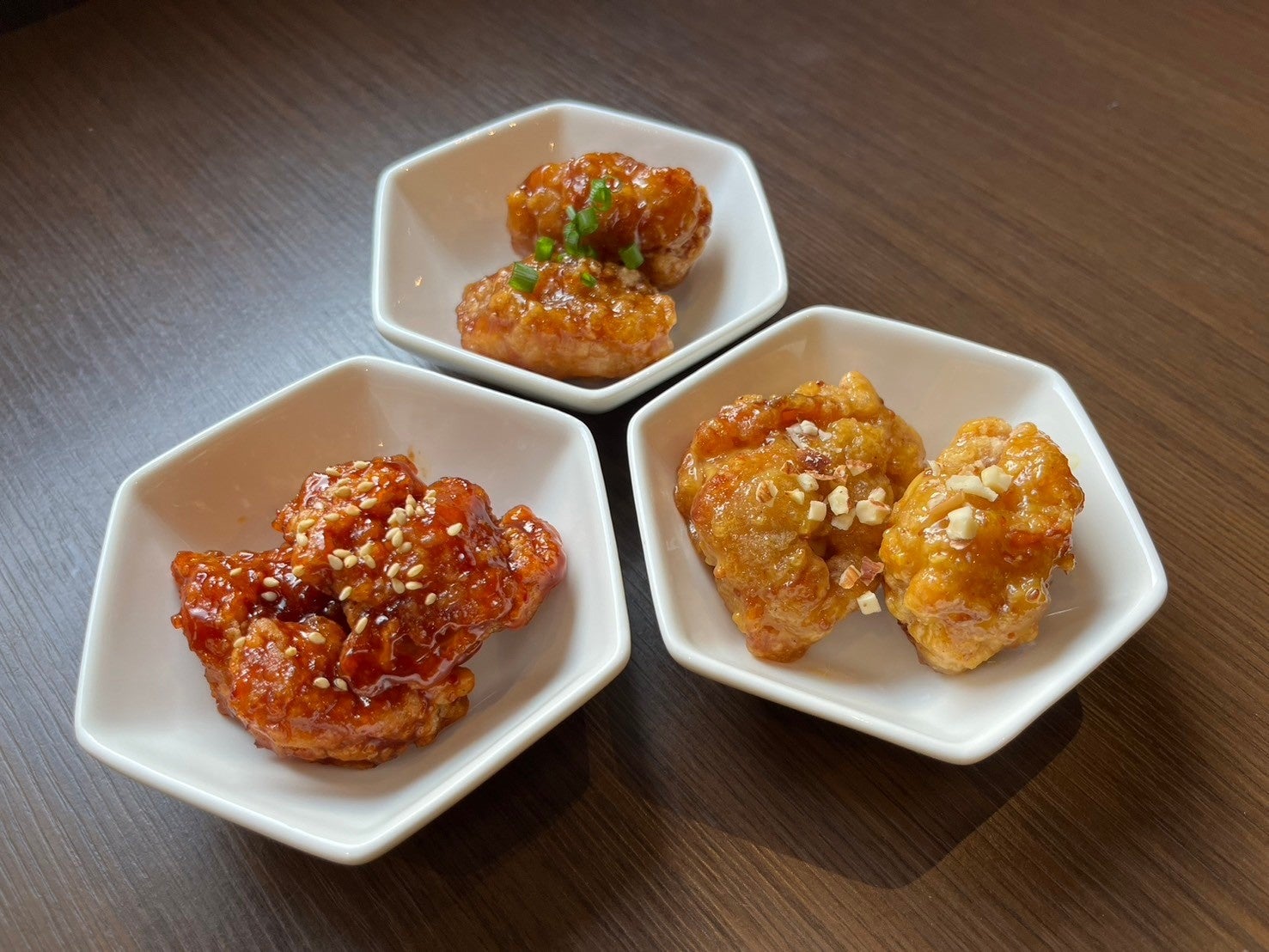 ●ヤンニョムチキン食べ比べセット・・・ヤンニョムチキン、ハニーマスタードチキン、カンジャンチキンが楽しめるセット 880円(税込)