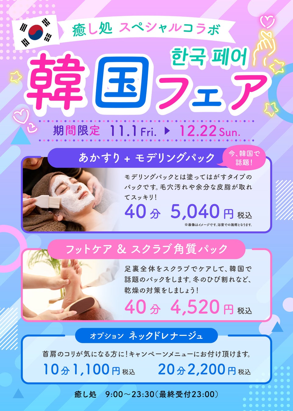 韓国フェア サウナ&グルメ&癒しで韓国気分満喫 OYUGIWA海老名で11月1日(金)より開催