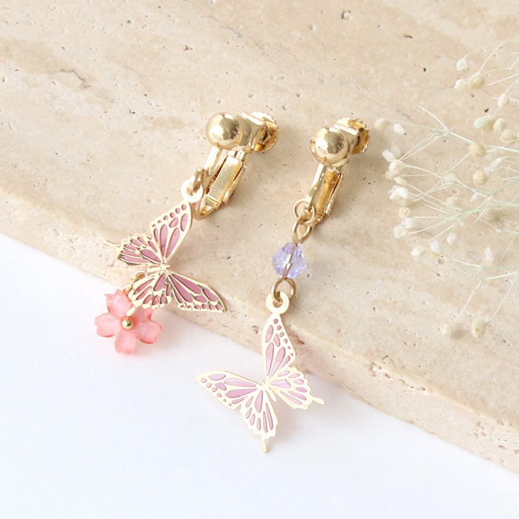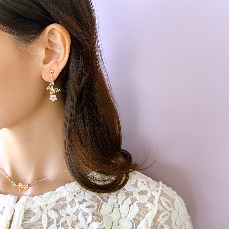 商品名: バタフライ×桜イヤリング