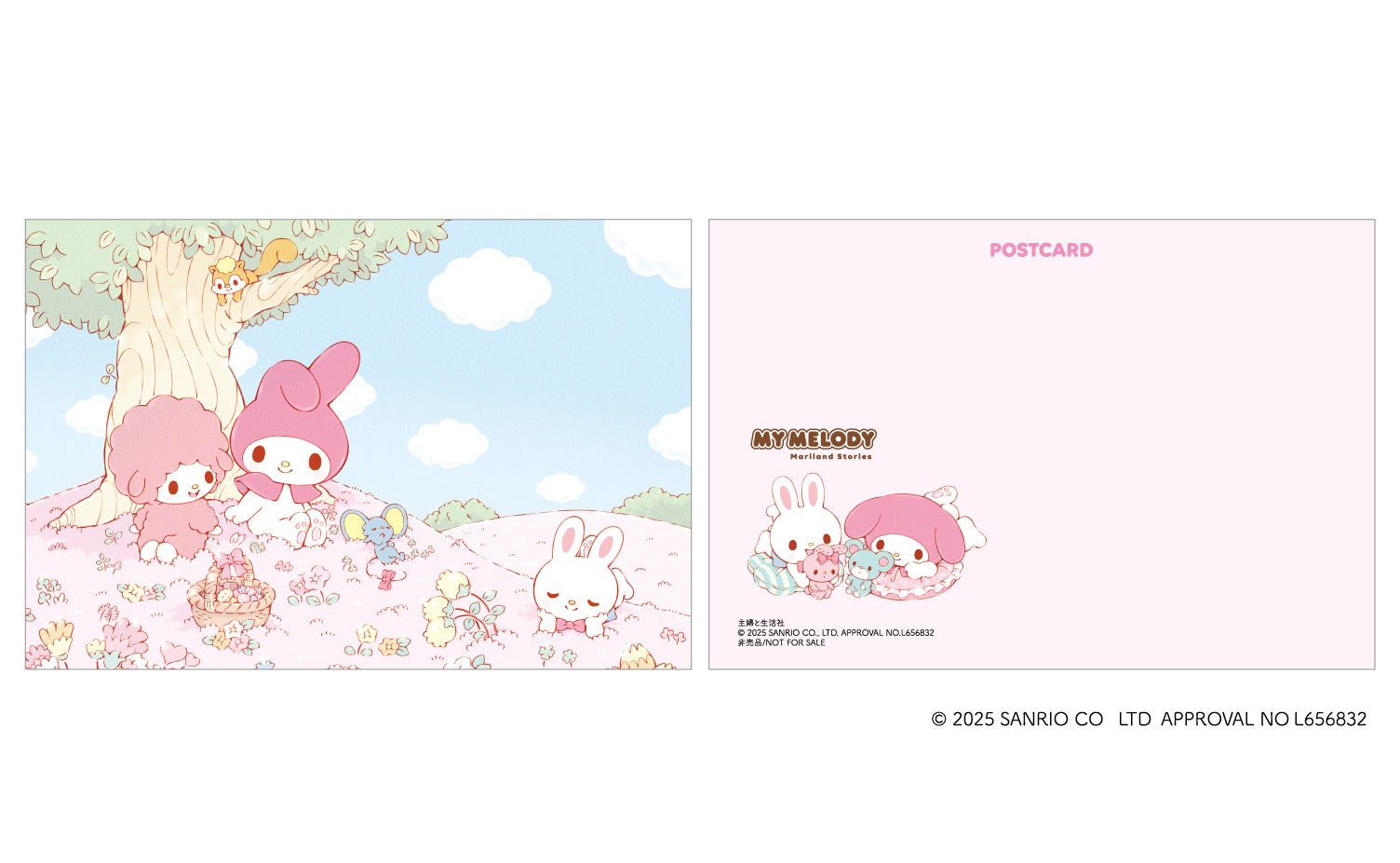 特典の絵柄は、1種類。自然豊かなマリーランドで暮らす、マイメロディたちのイラストがかわいいポストカードです♪