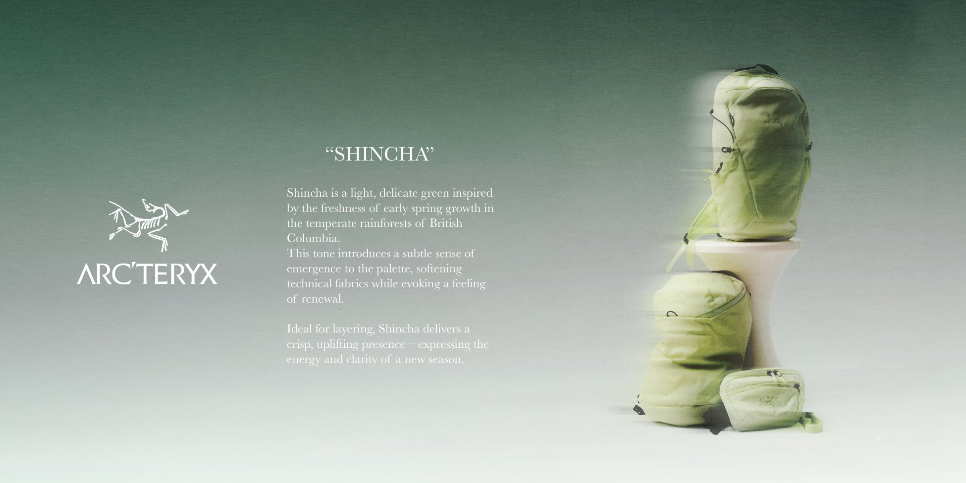「ARC’TERYX」のエクスクルーシブモデルのバッグがFREAK'S STOREに登場。エクスクルーシブカラーとして鮮やかな春の芽を感じさせるカラー"Shincha"を採用。