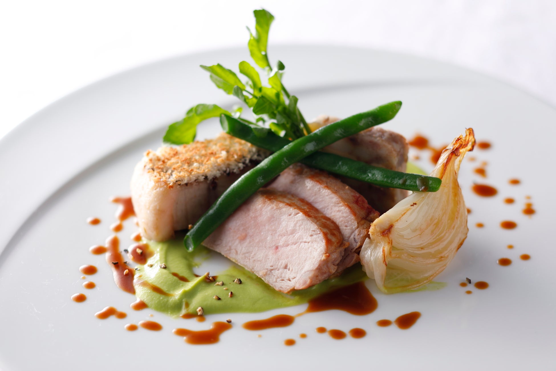 みずみずしく甘み豊かなロメインレタスを使用したシーザーサラダや、恵まれた環境で育まれた“天草さくら鯛”を昆布と桜の葉でポシェし、香り高く仕上げた魚料理、さらに“阿蘇どんぐりポーク”のローストとコンフィを、春の訪れを感じさせるグリンピースのピューレやいんげん、サラダオニオンとともに楽しめる豪華な肉料理など、食材の魅力を余すところなく堪能できるコースに仕立てました。調理長のこだわりが詰まったコースをお楽しみください。