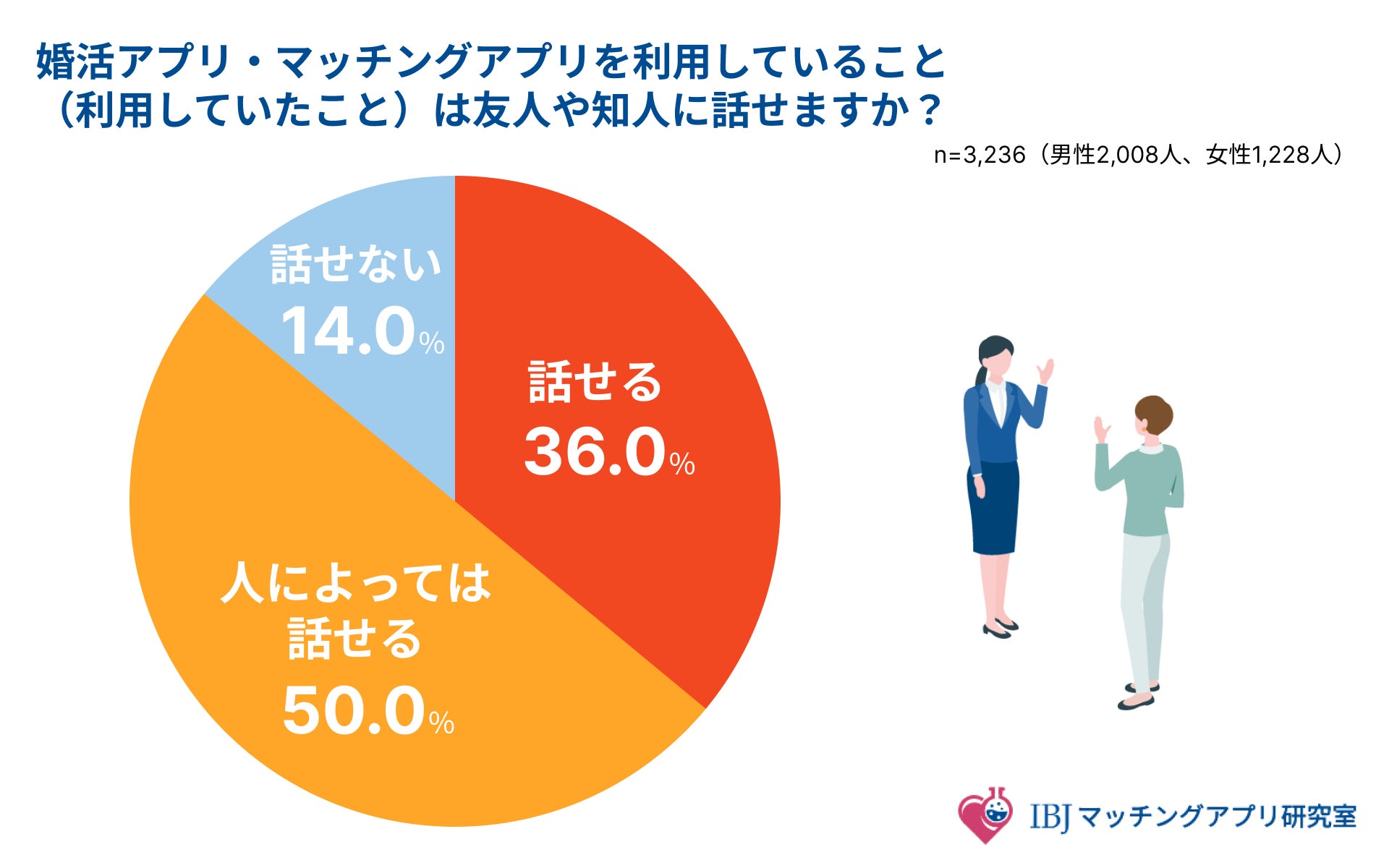 【婚活男女4,879名に調査】約9割の男女が婚活アプリ・マッチングアプリの利用を友人や知人に話せると回答