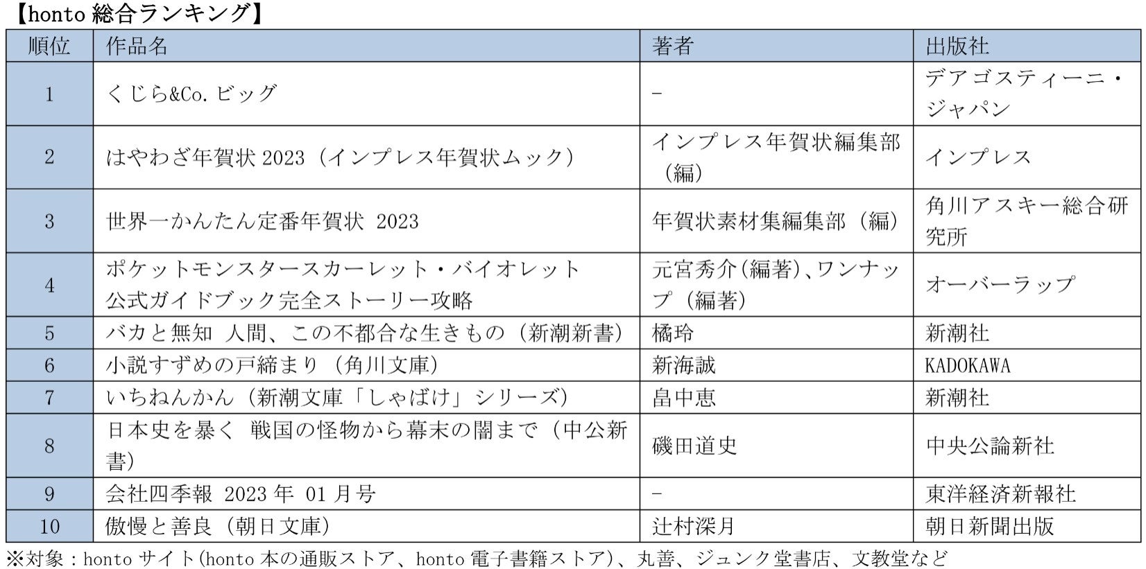 2022年12月ランキングについてハイブリッド型総合書店honto広報担当が解説