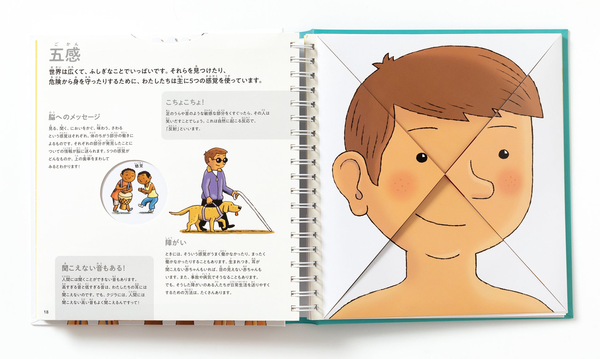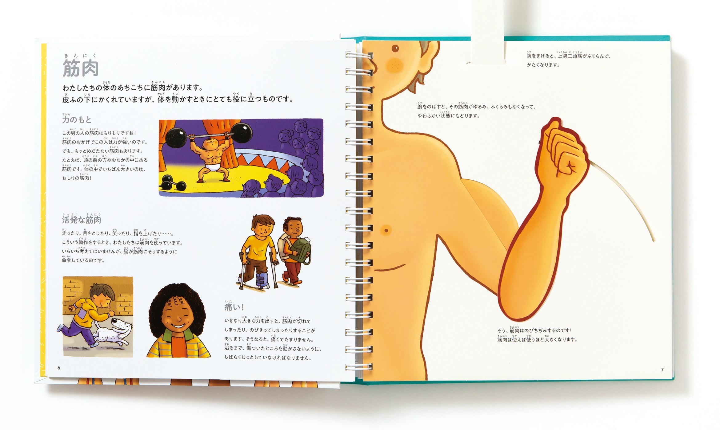 妊娠・出産から筋肉の動き、骨の仕組み、心臓と血液、病気予防などについて、人体のふしぎをわかりやすく解説した仕掛け絵本。仕掛けを動かしたりめくったりしながら、体の仕組みを楽しく学べます。