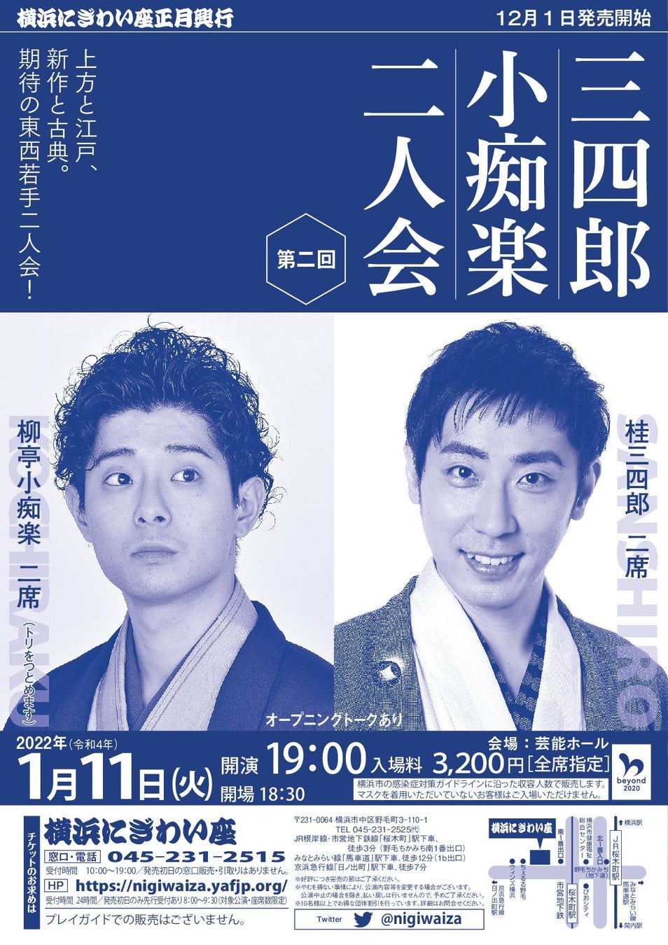 【横浜にぎわい座】上方と江戸の若手落語家の二人会を開催!「三四郎・小痴楽二人会」