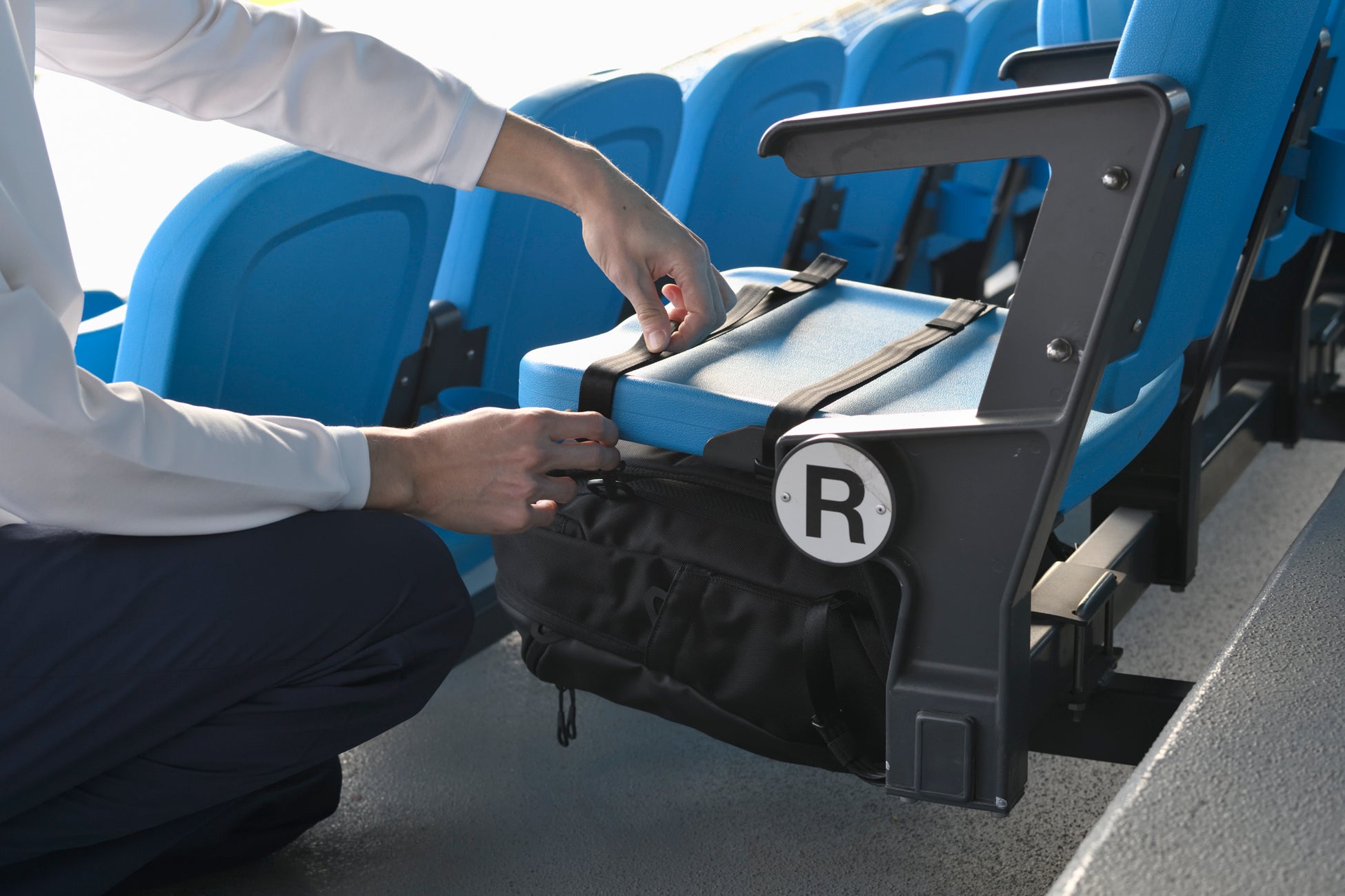 足下に置かずに使用できる構造により、個人の快適さにとどまらず、観戦マナーへの配慮にもつながる設計としています。仕事帰りの観戦から休日まで、幅広いシーンで使えるデザインとしました。