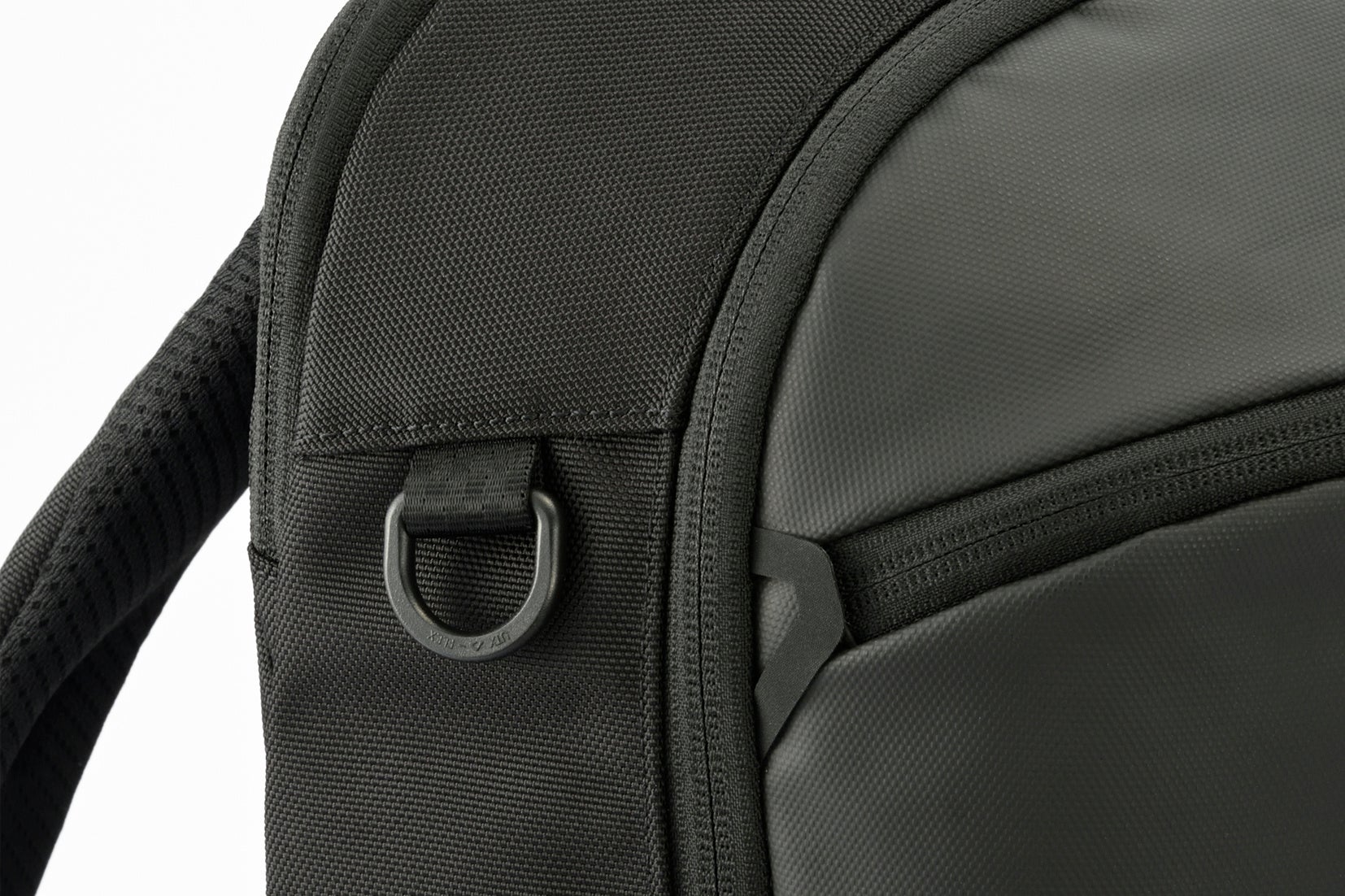 また、バッグハンギングシステムに取り付けられるクッションマットを付属。座布団代わりとして使えるほか、通常時はPCスリーブのクッション材としても活用できます。マットはメッシュ面と起毛面を備え、リバーシブル仕様で季節に合わせた温度調整が可能です。