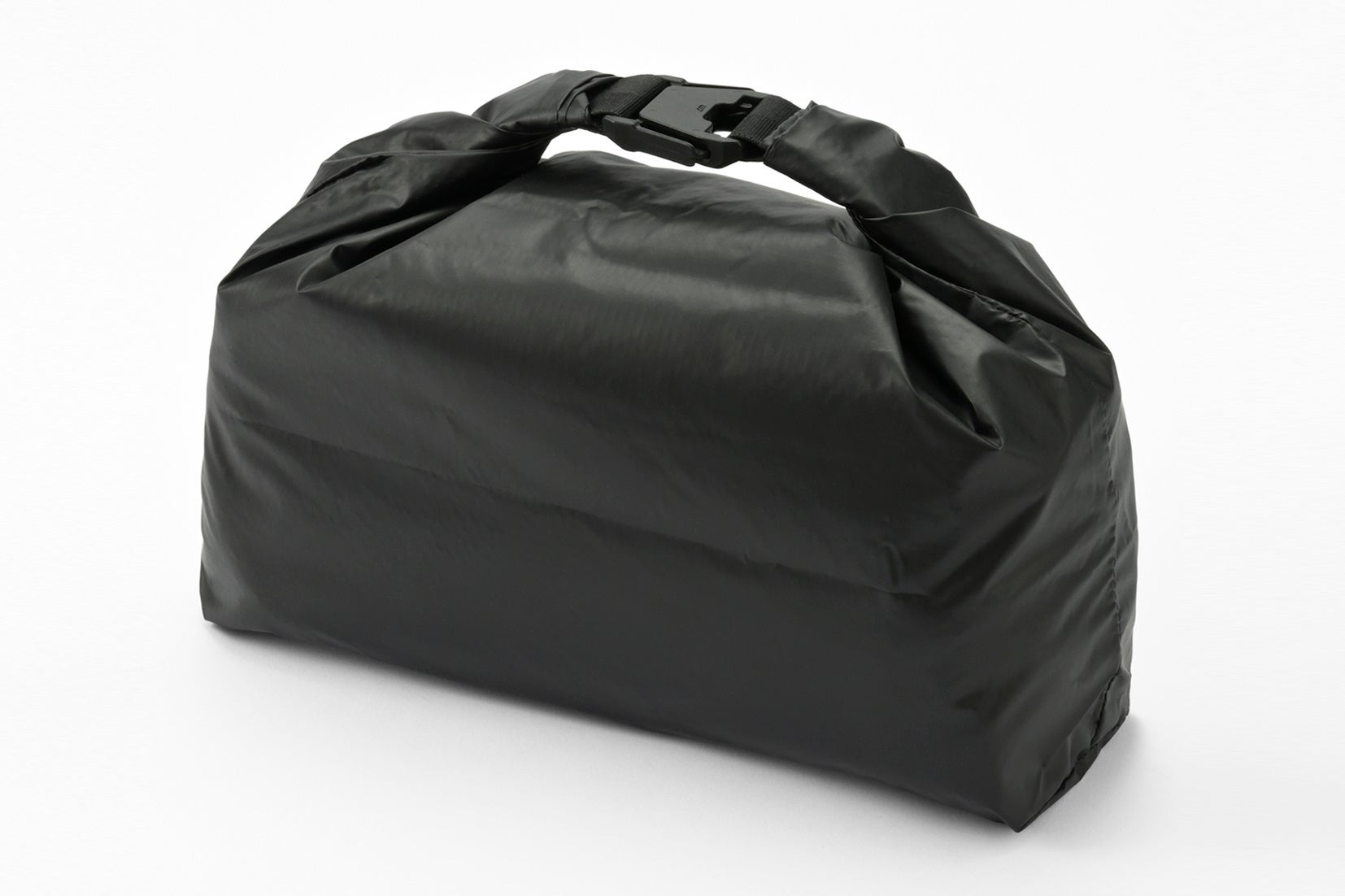 濡れた衣類やタオルの収納に使える、防水加工生地の付属バッグ。 (完全防水ではありません)