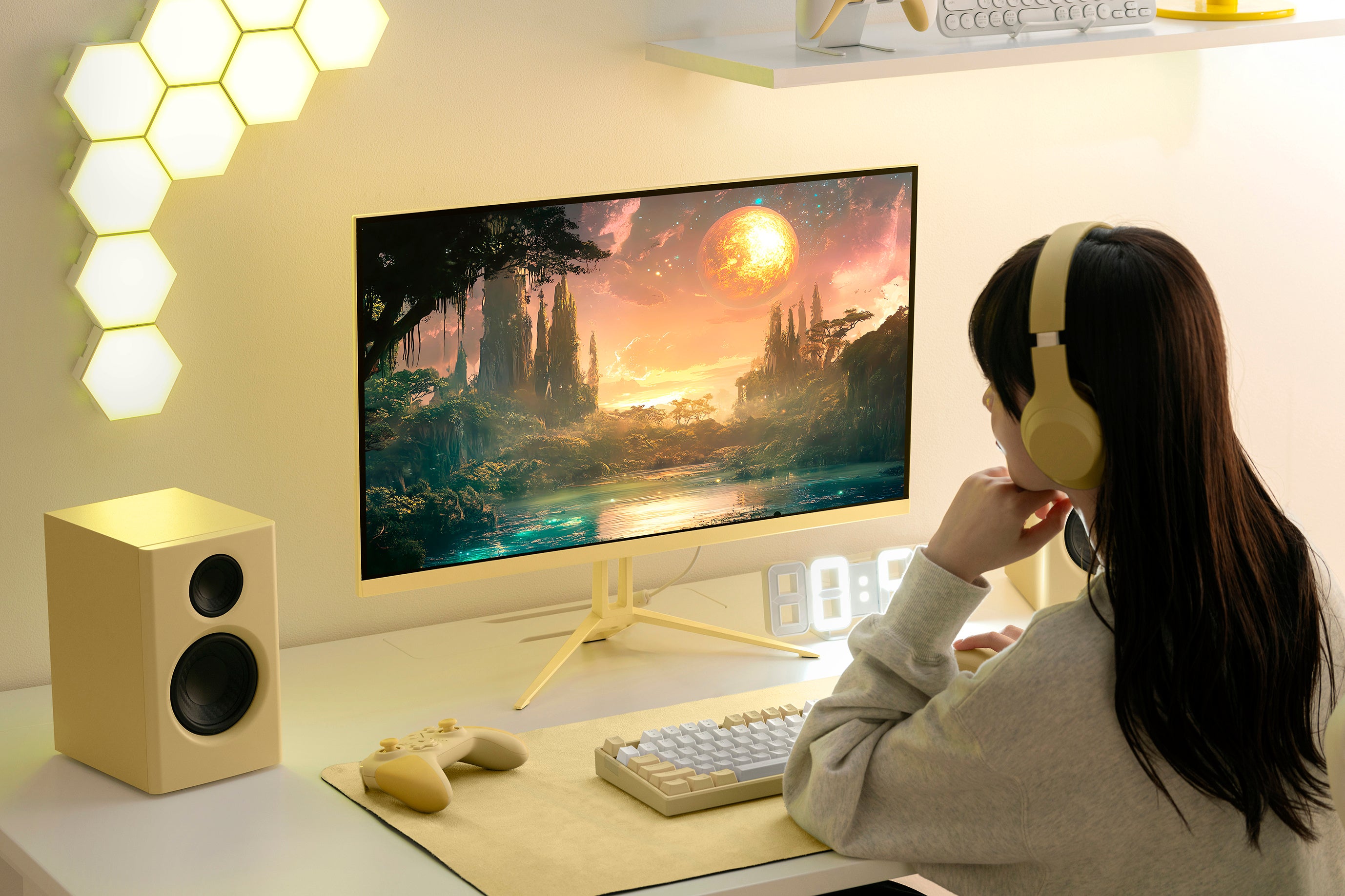 今回発売する「LUCA ゲーミングモニター」23.8インチ・27インチは、7色(ブラック、ホワイト、ピンク、ブルー、パープル、イエロー、グリーン)の豊富なカラーバリエーションを用意しているため「推しカラー」を選べ、自身の個性やインテリアの雰囲気に合わせて自分好みのゲーム空間を構築できます。