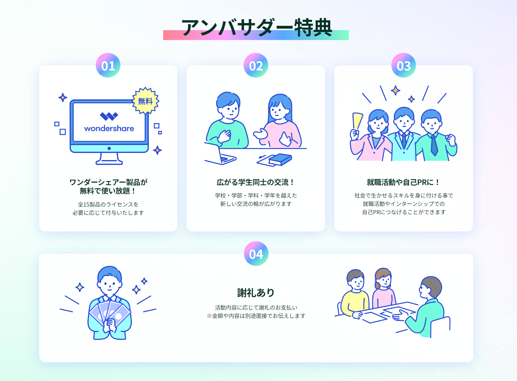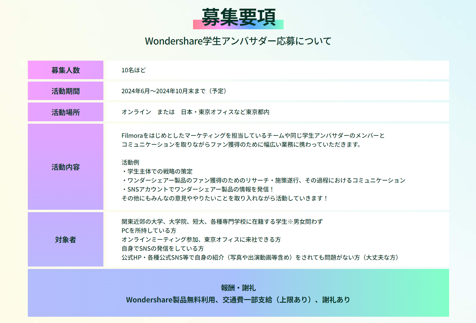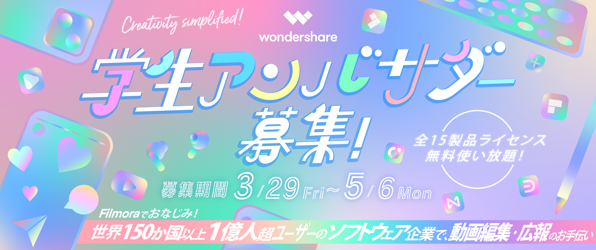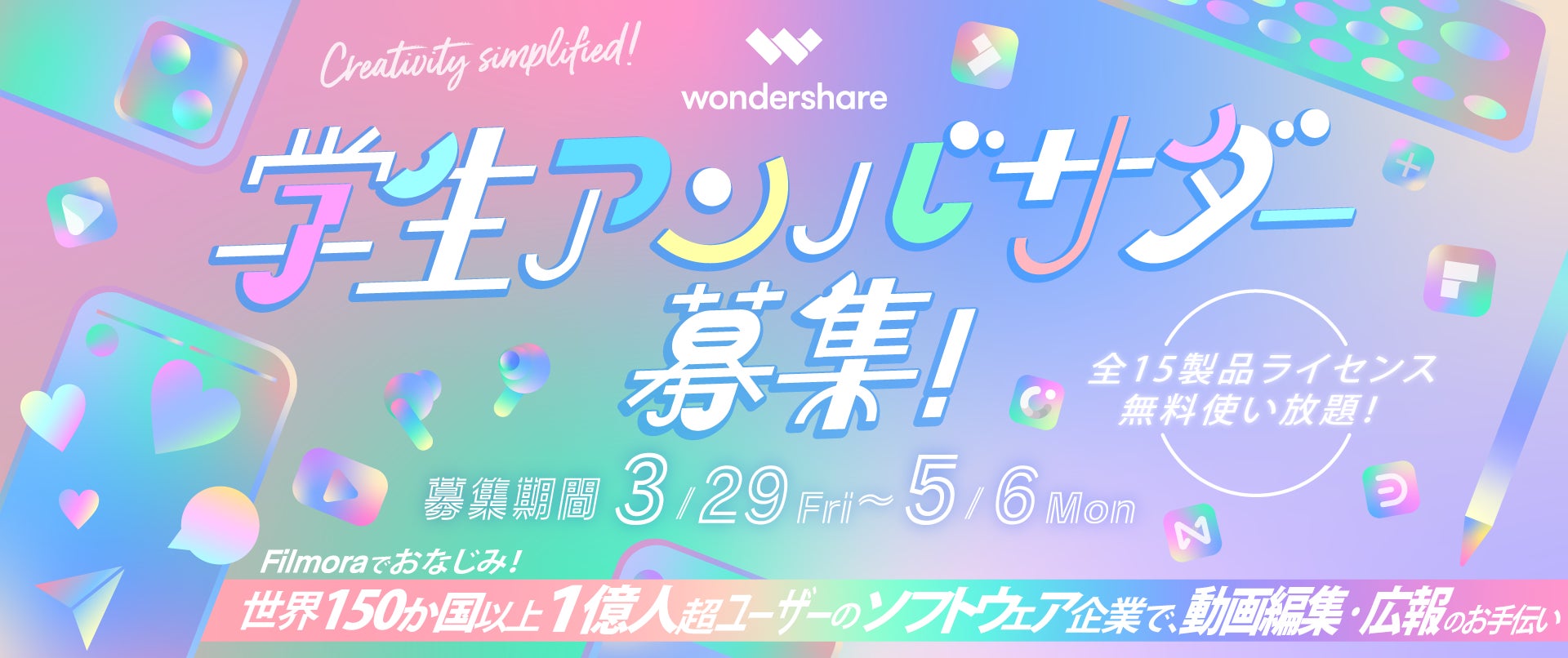 募集詳細サイト ➤ https://www.wondershare.jp/call-for-student-ambassadors.html