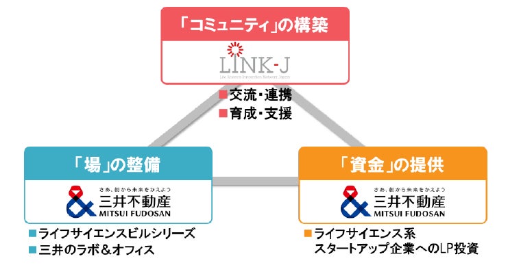 三井不動産は、「産業デベロッパー」として新産業創造に取り組んでおり、中でもライフサイエンス領域では、「三井のラボ&オフィス」事業として、一般社団法人ライフサイエンス・イノベーション・ネットワーク・ジャパン(理事長:岡野 栄之、以下「LINK-J」)が行う「コミュニティの構築」と協働し、「場の整備」を通じたイノベーションによる新産業の創造・育成につながるエコシステム構築を加速させてきました。