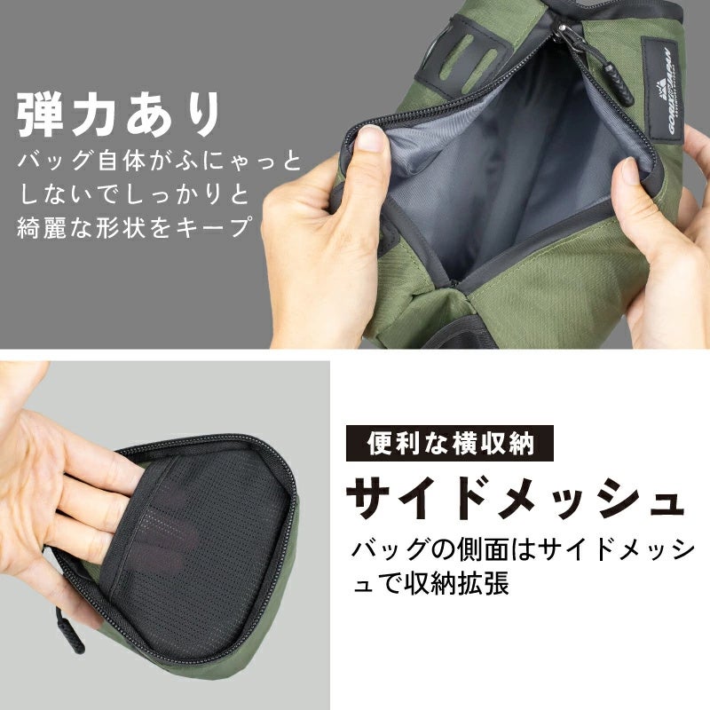 大バッグ約1.3L/小バッグ約0.7Lの収納力で、スマホや空気入れ、