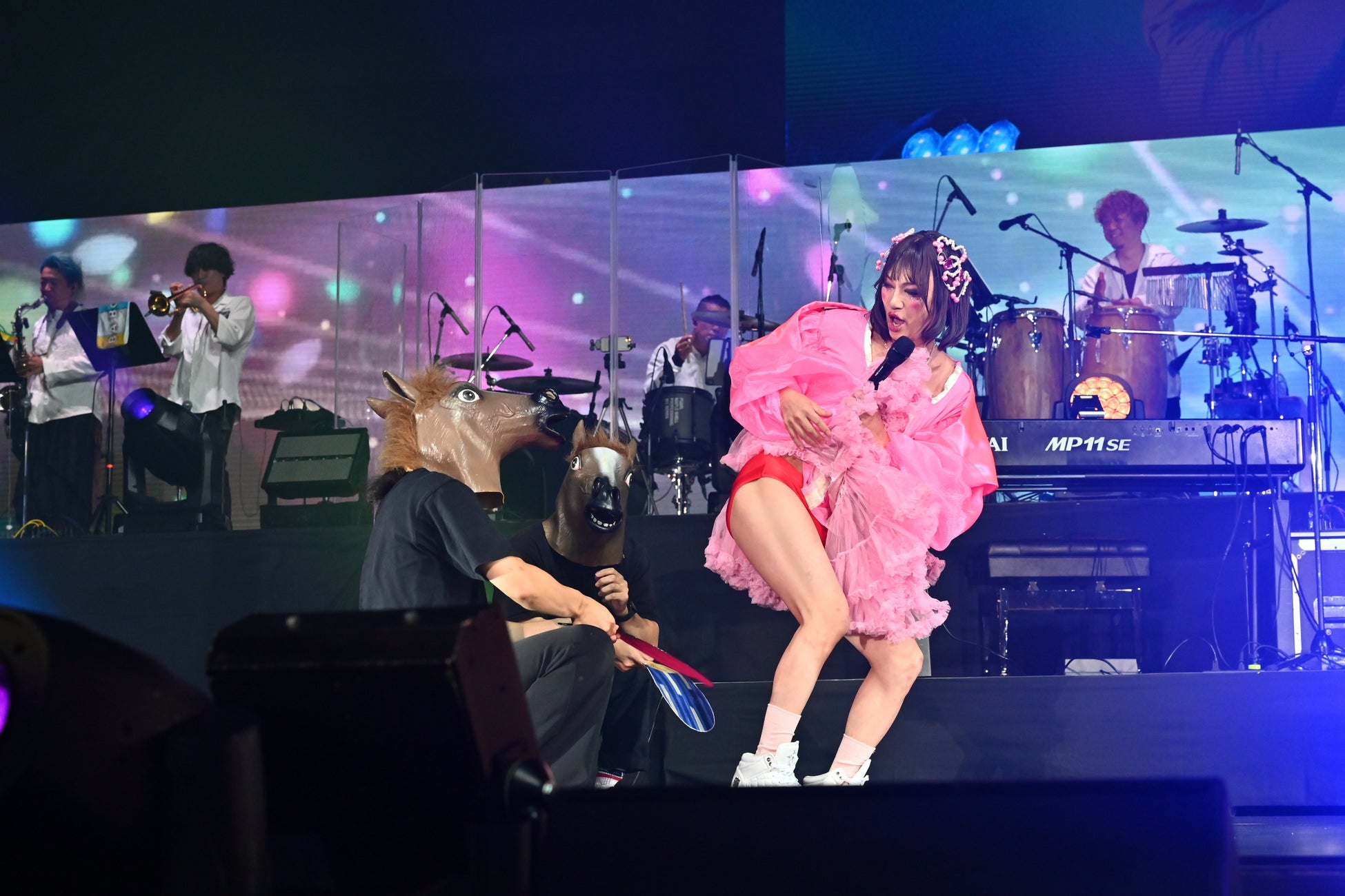 その後も、REAL AKIBA BAND による『ジョジョ~その血の運命~』、そしていつもの衣装に戻った RAB メンバーが『インキャダンス』『底辺ディスコ』『散財サンバ』『メンタルブレイクダンサー』などを立て続けに披露し、会場の熱気は最高潮に。