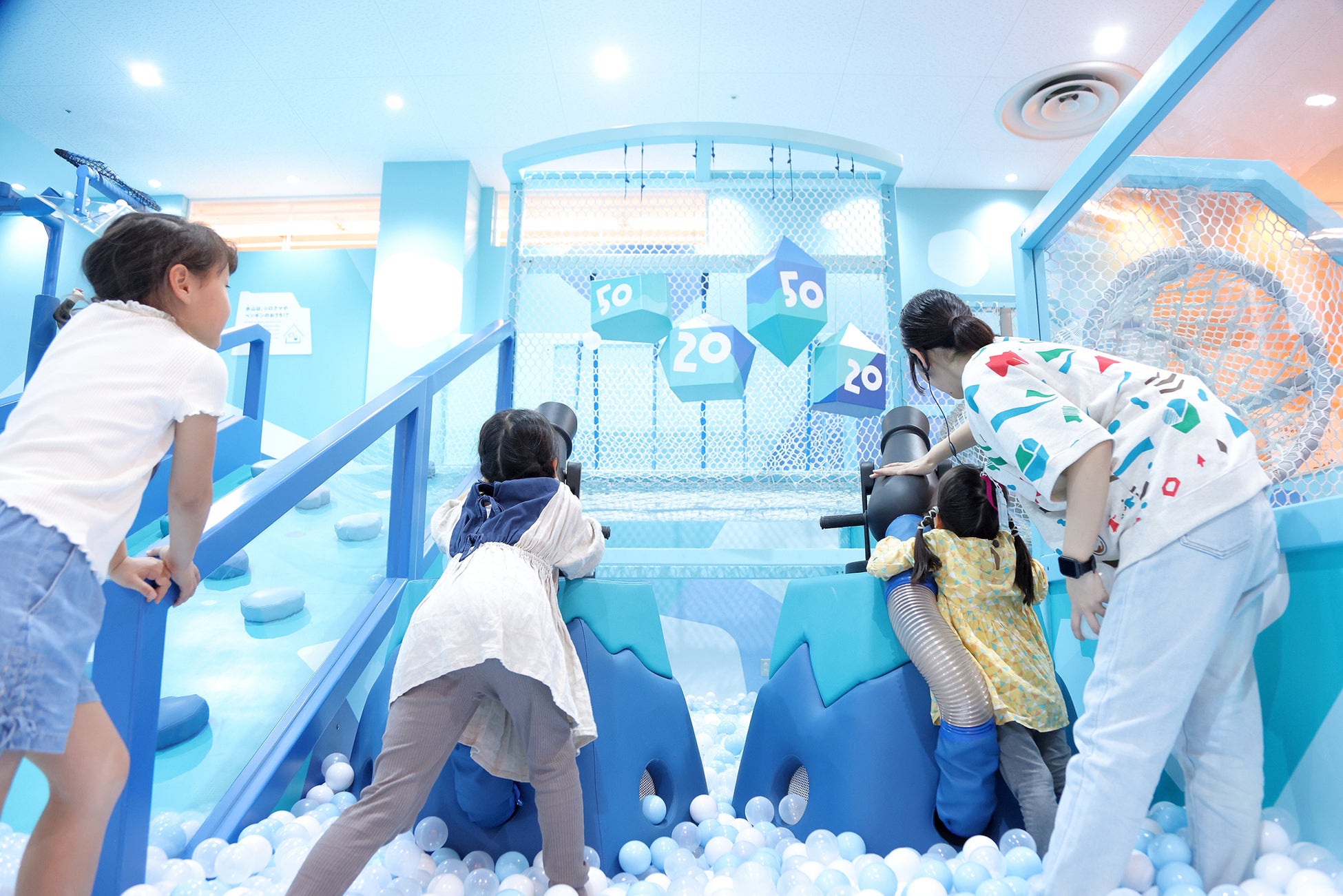 氷山スライダーで風を切ってすべったり、ボルダリングで斜面をのぼったり。体を使う爽快な遊びができるコーナーです。ボールを発射して遊べる的当てコーナーもあります。