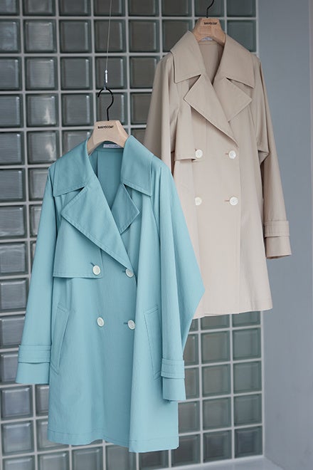 雨晴兼用のアンブレラコート。軽量でハリのある素材を一重で仕立てたゆとりのあるシルエットで、軽やかに羽織れます。ファッション性もありながらレインコートとしての高い機能性も備えています。
