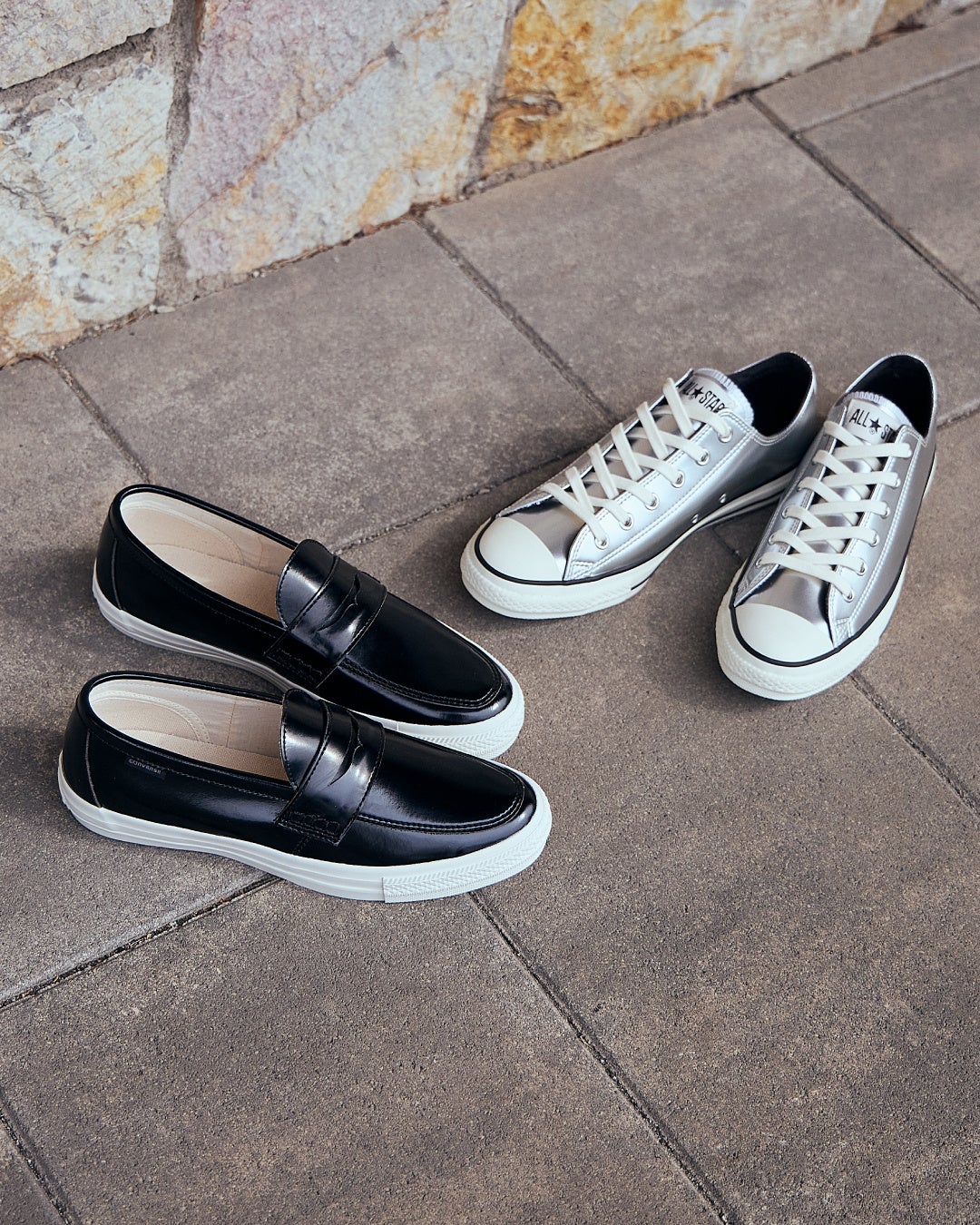 また、「ALL STAR COINLOAFER」や「CXP SY LOAFER」などのローファータイプもラインナップ。スニーカーの快適な履き心地はそのままに、ラフすぎない印象を演出します。Tシャツやスウェットなどのカジュアルな装いにも自然になじみ、日常のコーディネートに取り入れやすいコレクションです。