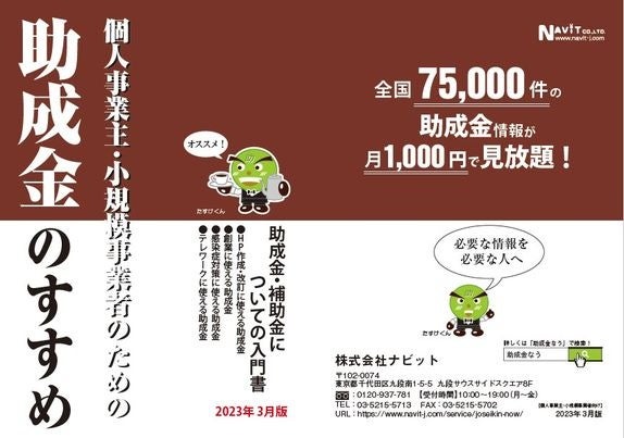 「個人事業主・小規模事業者のための助成金のすすめ」2023年3月版が登場【助成金なう】