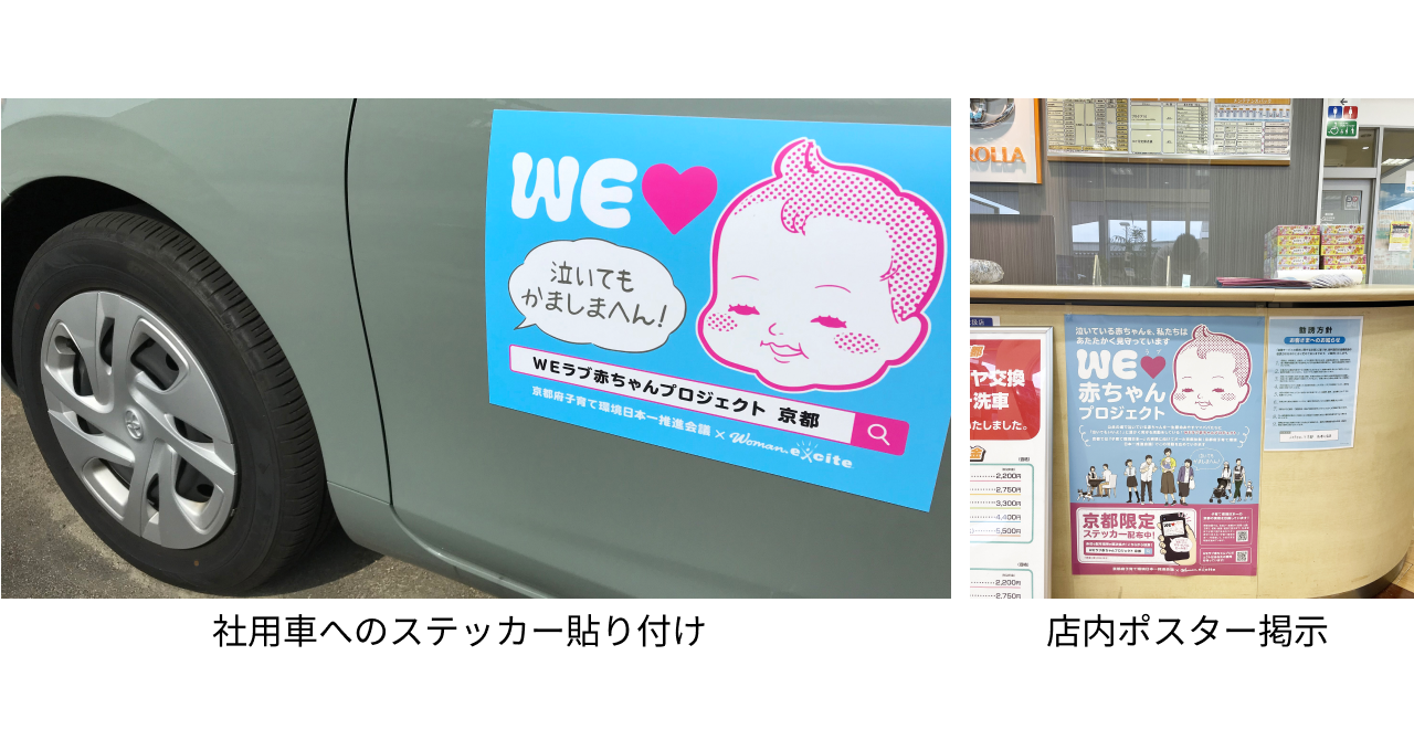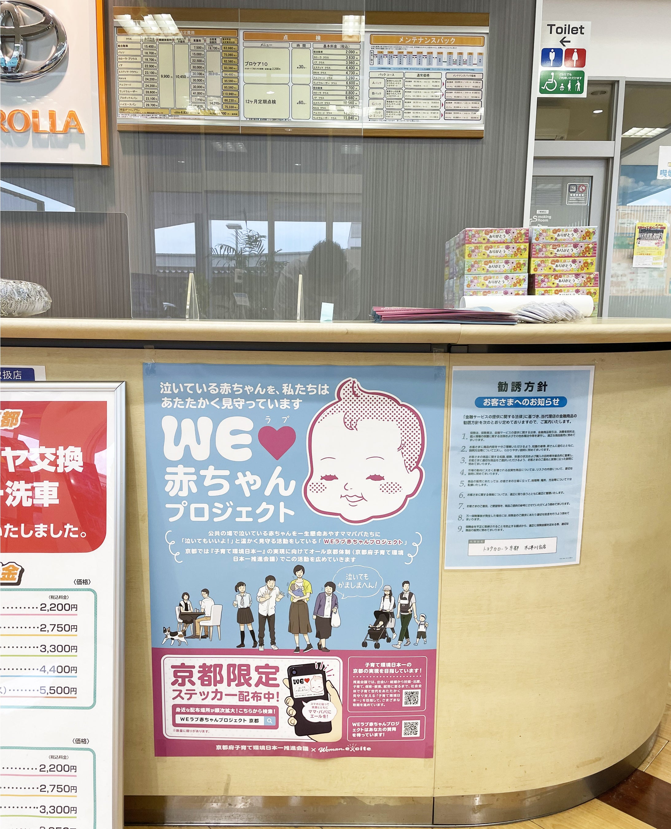 「WEラブ赤ちゃんプロジェクト」×京都府オールトヨタ、府内全96店舗で「泣いてもかましまへん!」コラボ開始!ポスター掲示やステッカー配布も