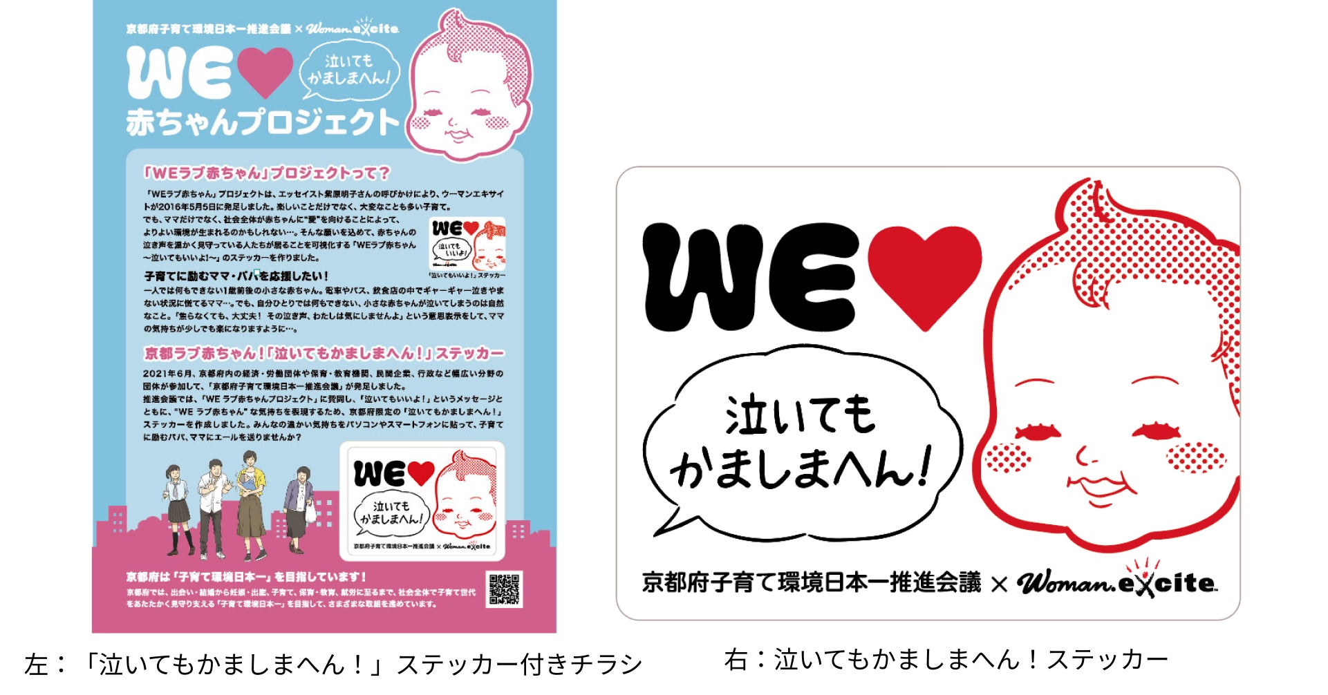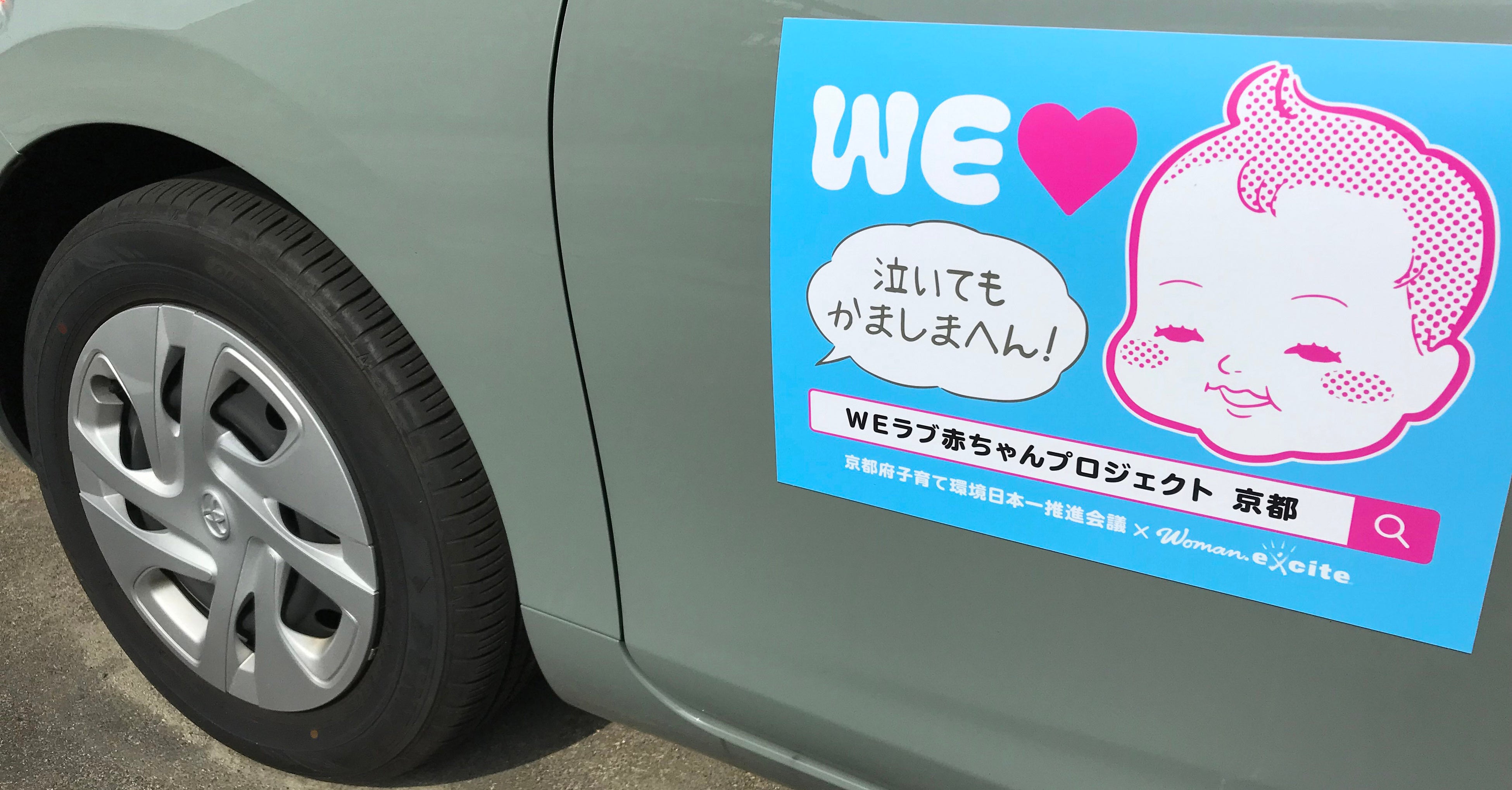 エキサイト株式会社(所在地:東京都港区、代表取締役社長:西條晋一、以下「エキサイト」)運営のママ向けウェブメディア「ウーマンエキサイト」が立ち上げた「WEラブ赤ちゃんプロジェクト」。これに賛同した「京都府子育て環境日本一推進会議」と地域活性化包括連携協定を締結する、京都府オールトヨタの府内全店で、京都版「泣いてもかましまへん!」ステッカーの配布やポスターの掲示が開始されます。