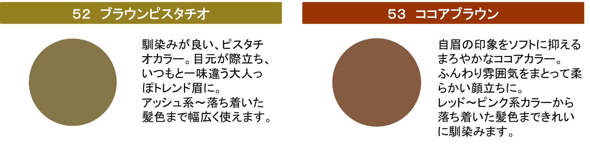 高発色処方で、自眉が濃い方でもサッとひと塗りであか抜け眉を叶え、秋・冬を感じさせるトレンド感のある眉メイクが楽しめます。