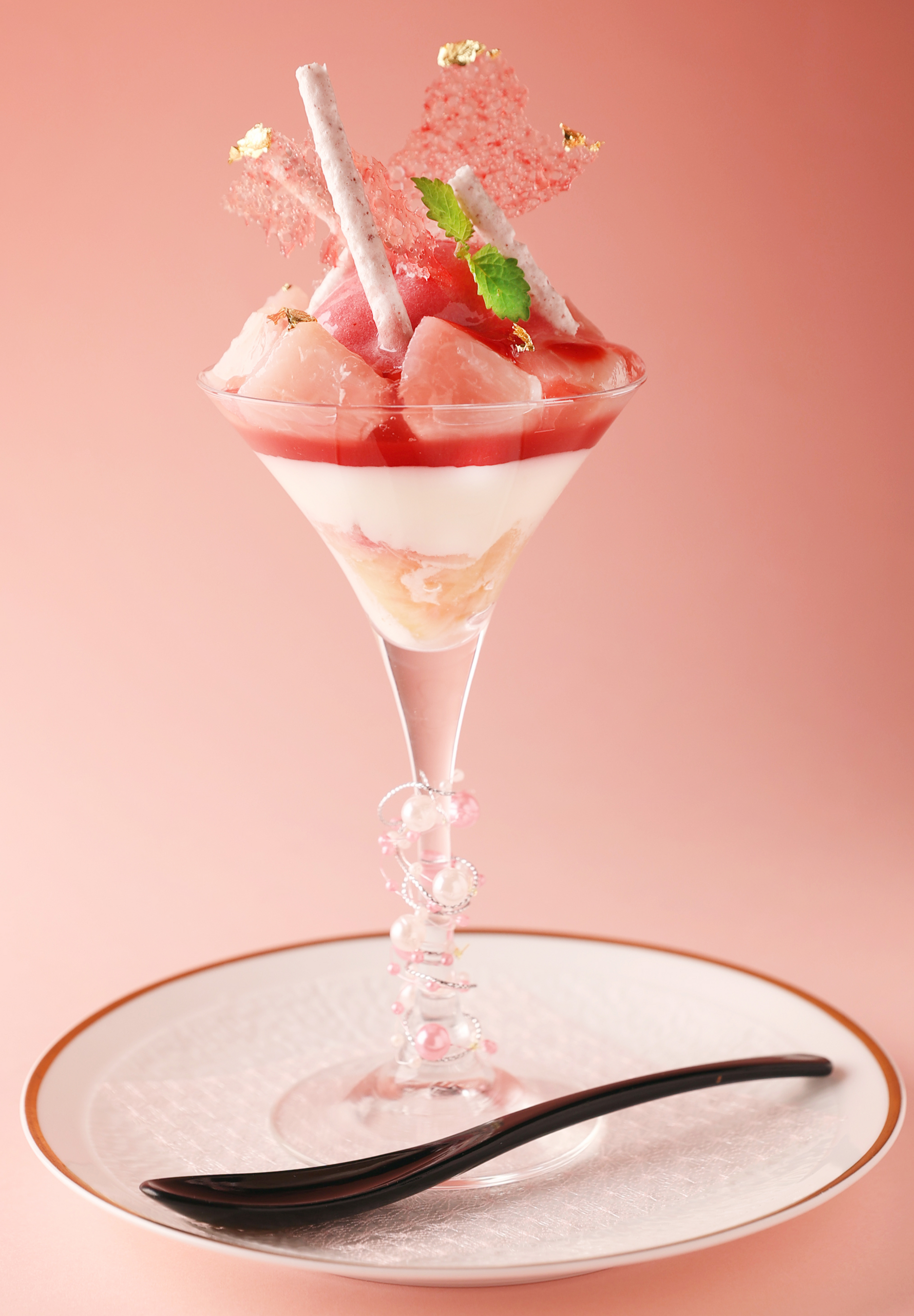 メニュー名:桃のパフェ ヴェルヴェーヌの香りをアクセントに
