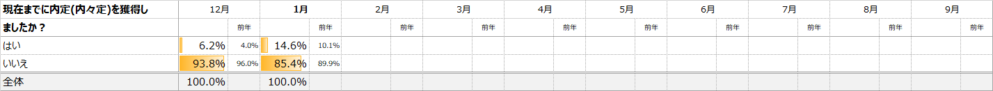 2023年卒1月度内々定率調査の発表!【12月末段階での内々定率は14.6%。昨年同時期よりも4.5ポイントアップ】