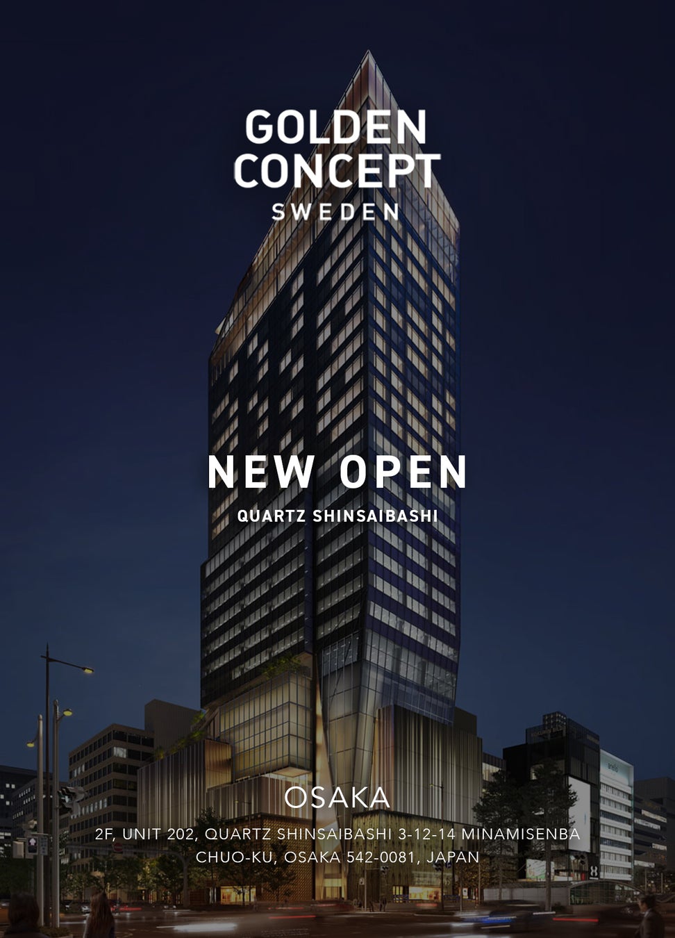2026年4月25日 大阪・心斎橋に誕生する新たなランドマーク「クオーツ心斎橋/QUARTZ SHINSAIBASHI」に、GOLDEN CONCEPTが新店舗をオープン。