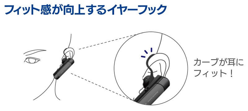 イヤーフックは3次元デザインにより耳周りの形状に沿わせるようにカーブさせることで、耳にフィットしやすく長時間の装着でも快適に使用可能です。