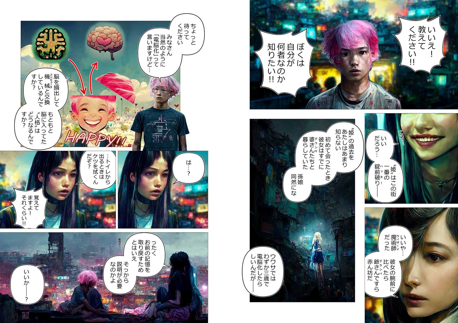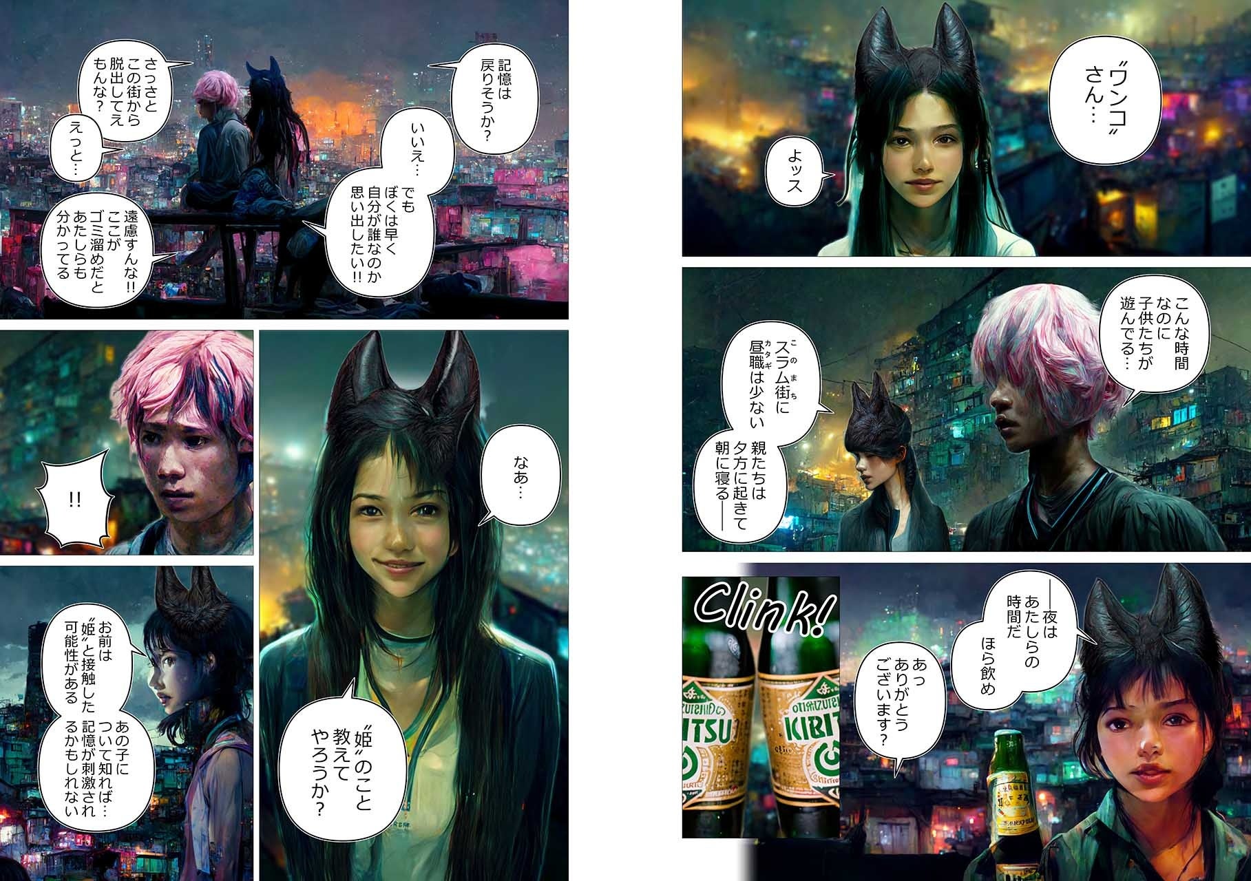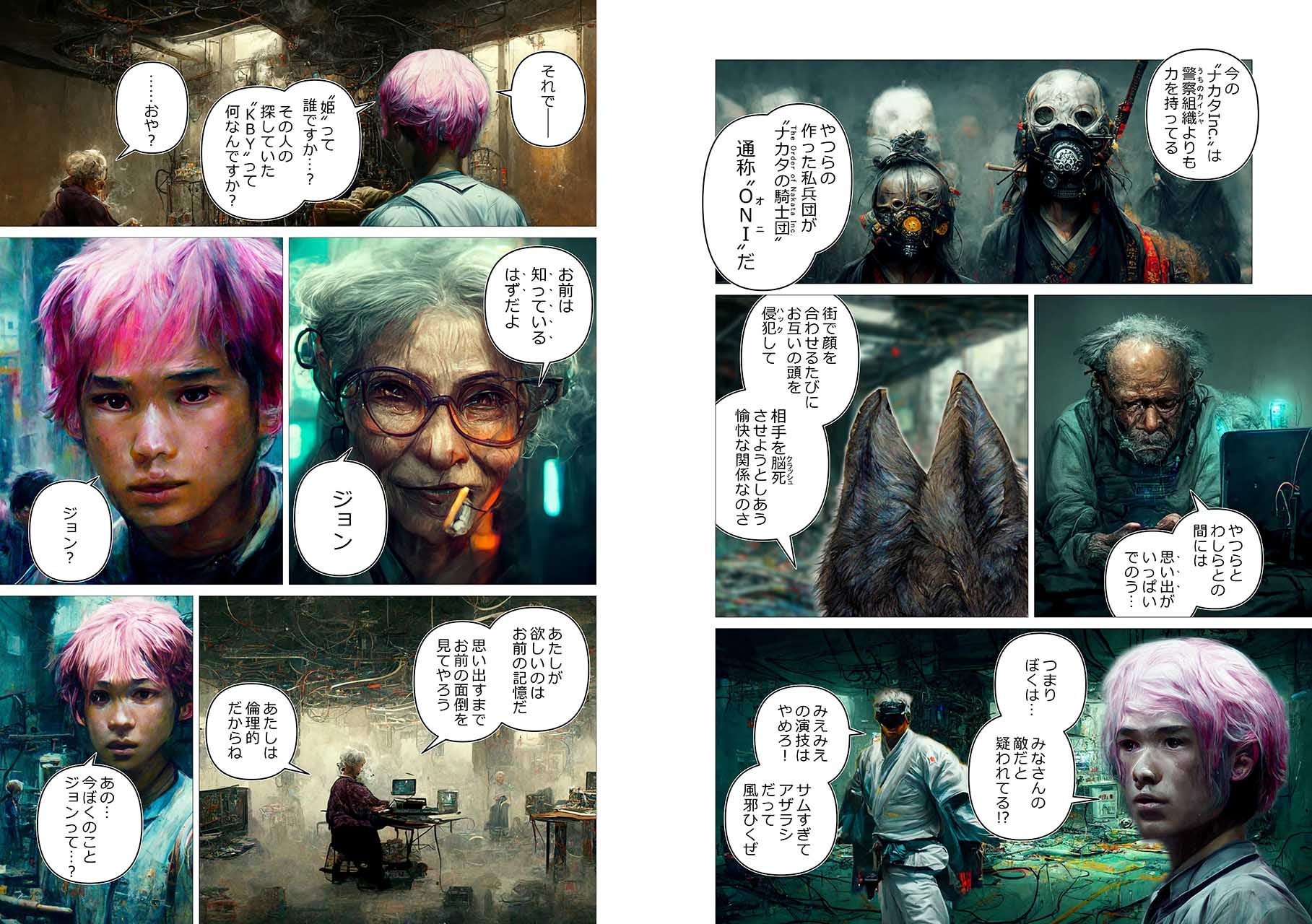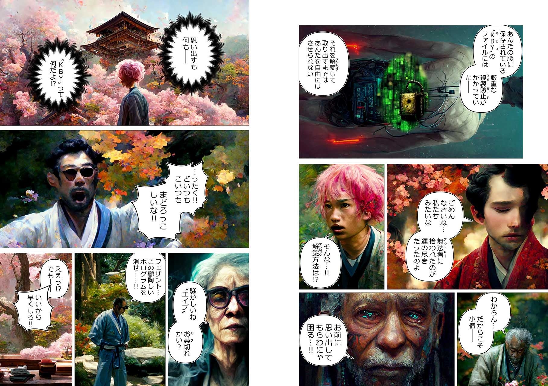 話題のAI画像生成ソフトを駆使して作られた初の本格SFコミック。書籍には公開版の加筆修正のほか、描き下ろしで制作秘話や制作過程、AIの使い方などを収録予定です。