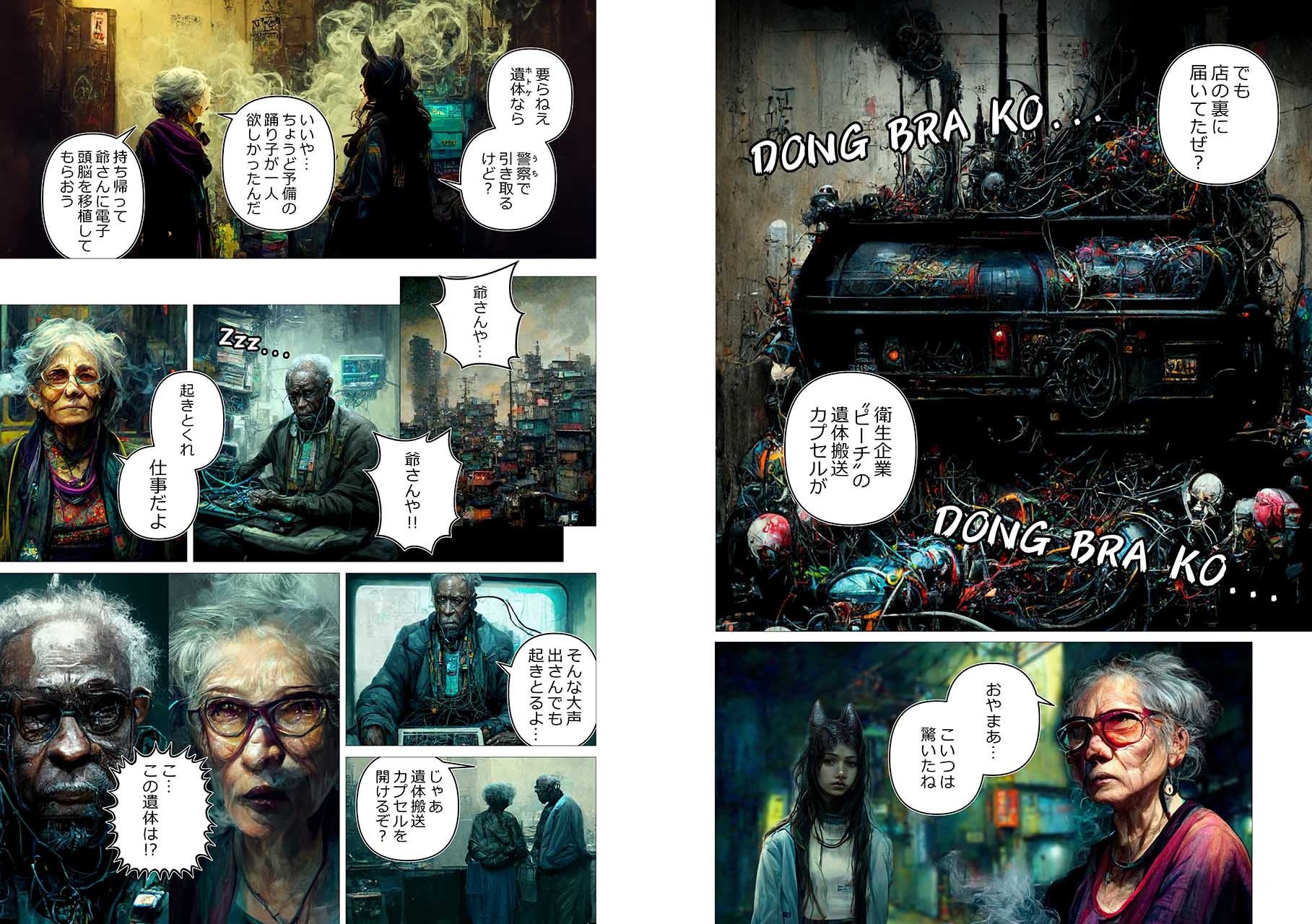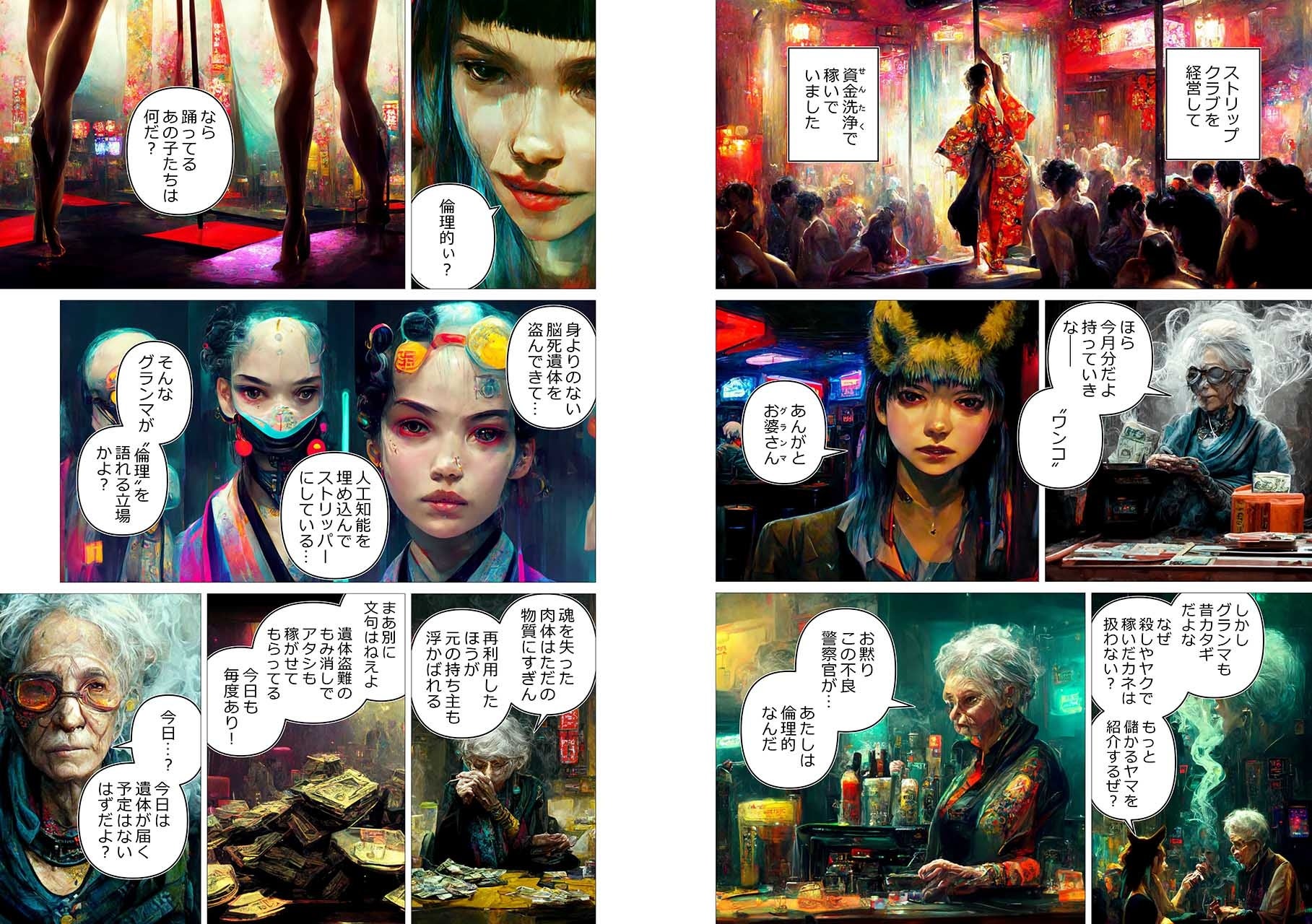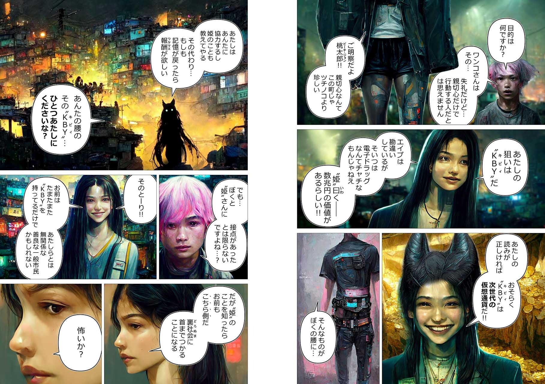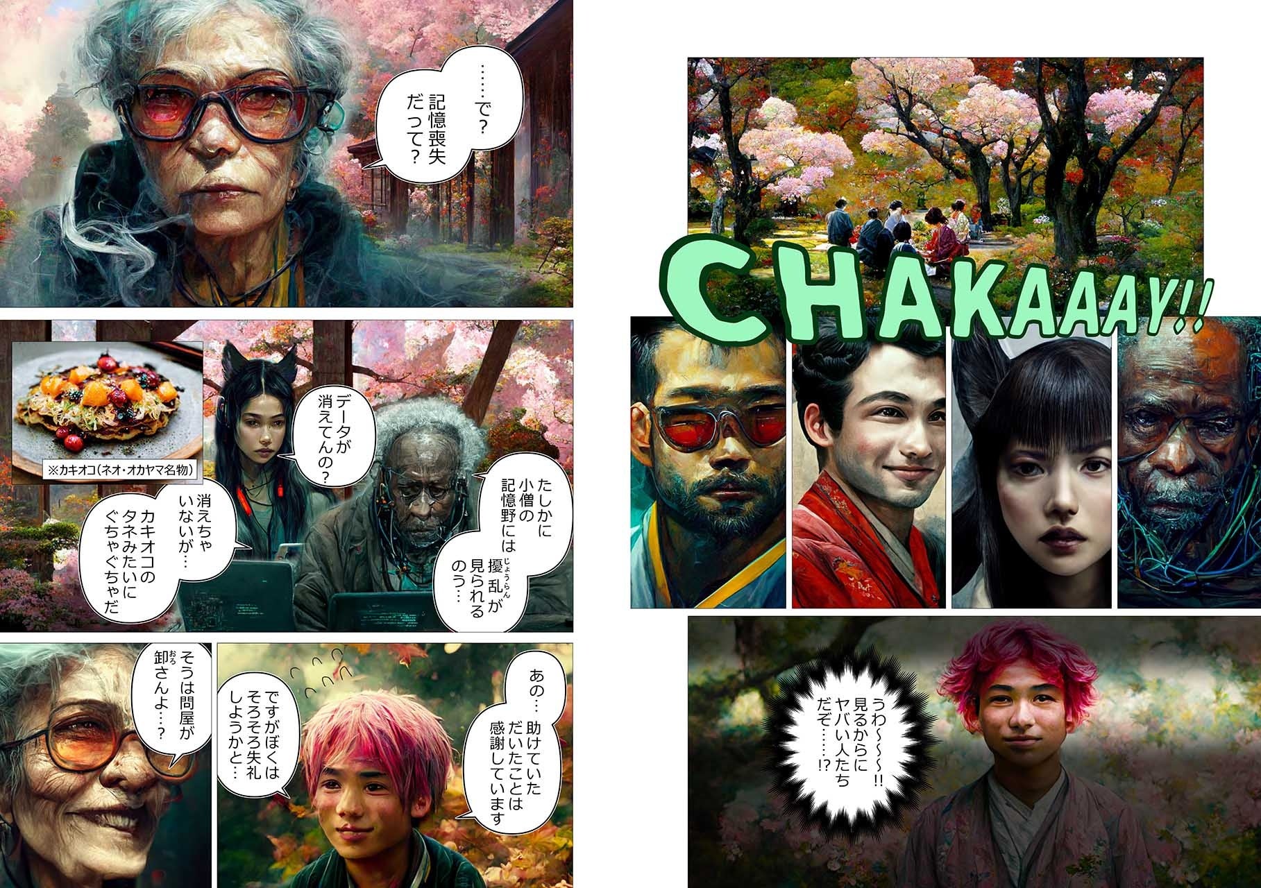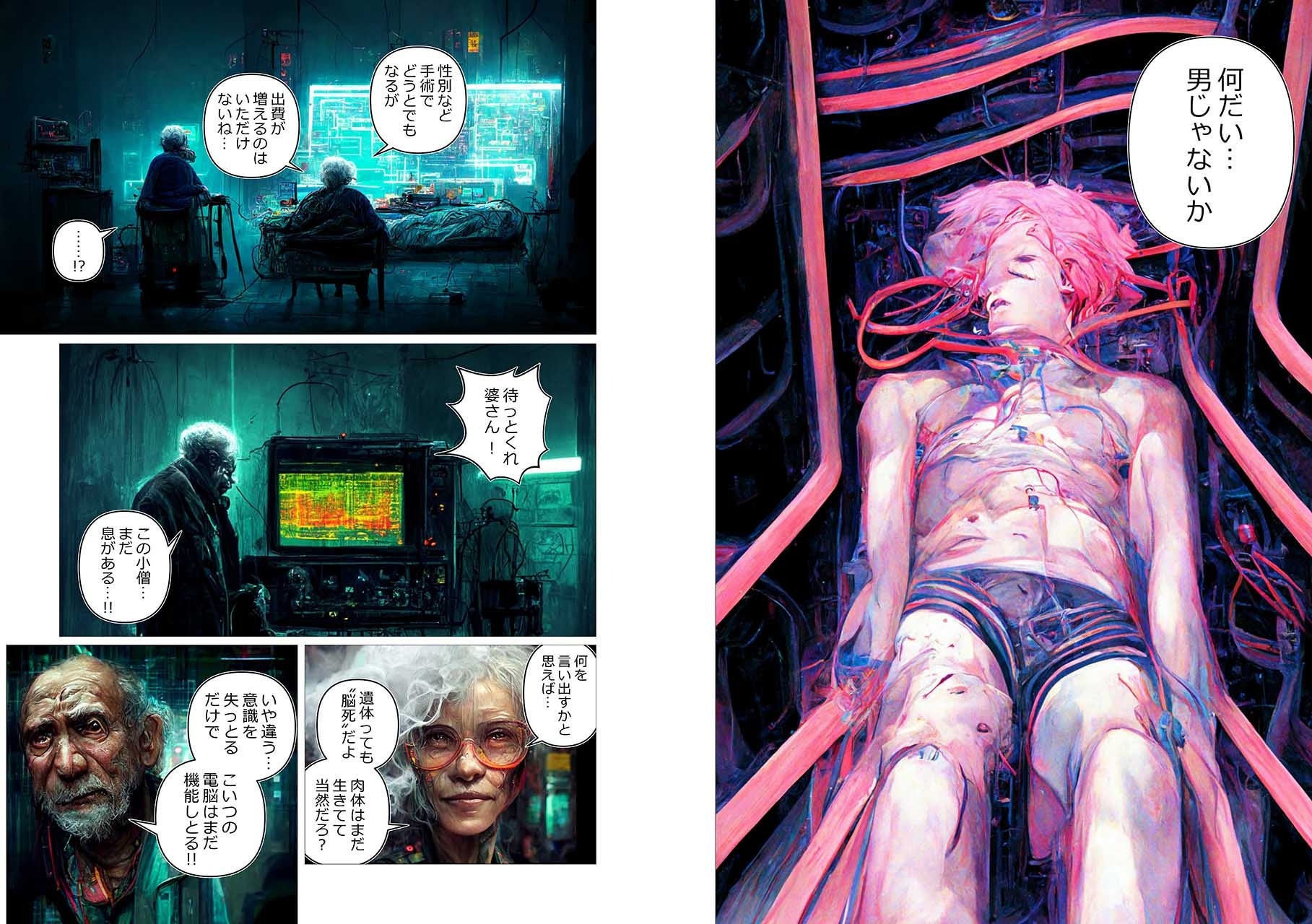 話題のAI画像生成ソフトを駆使して作られた初の本格SFコミック。書籍には公開版の加筆修正のほか、描き下ろしで制作秘話や制作過程、AIの使い方などを収録予定です。
