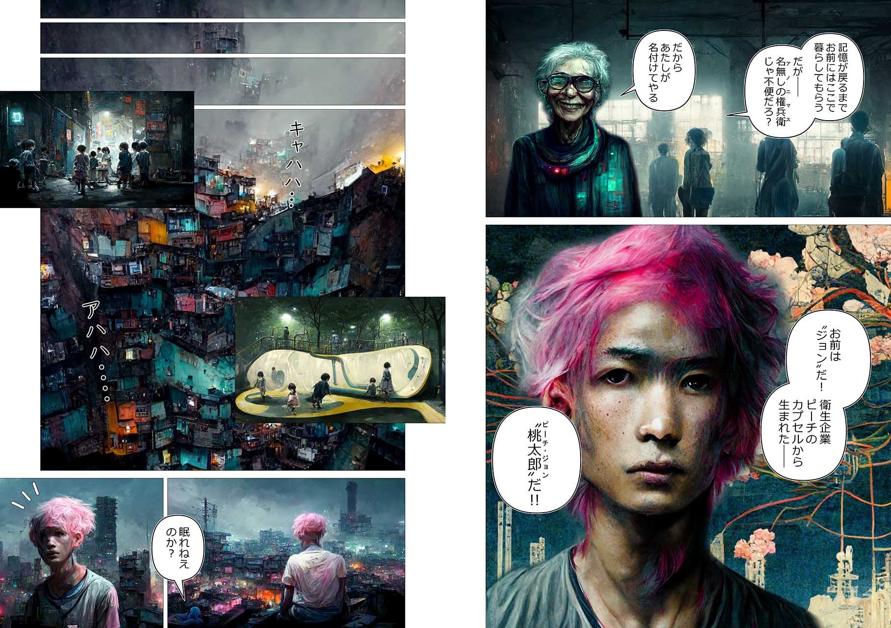画像生成AIを使って描かれた超解釈SF『桃太郎』、フルカラーコミックにてお届け。