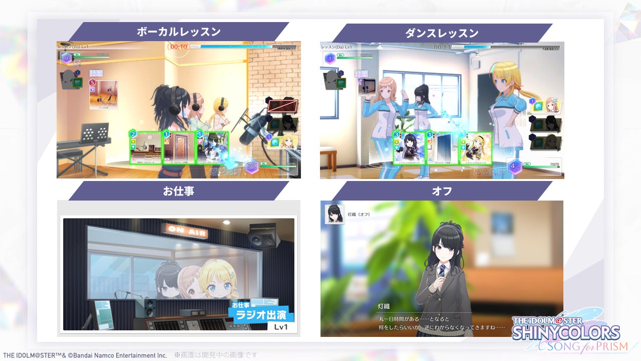 とゲームパートが大きく2つに分かれた構成になっており自らがプロデュースしたアイドルたちを、ステージで輝かせることができます。