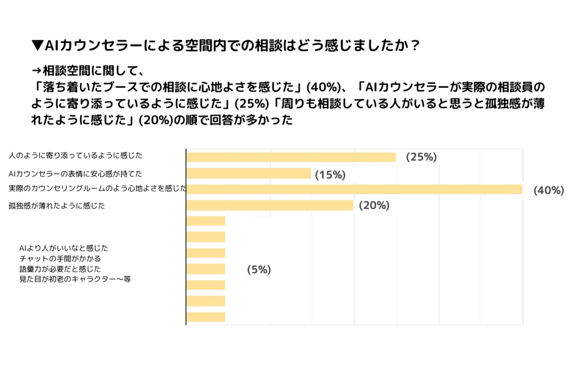 ○約85%の利用者がAIとの対話を自然と感じ、約65%が心の軽減を実感しました。
