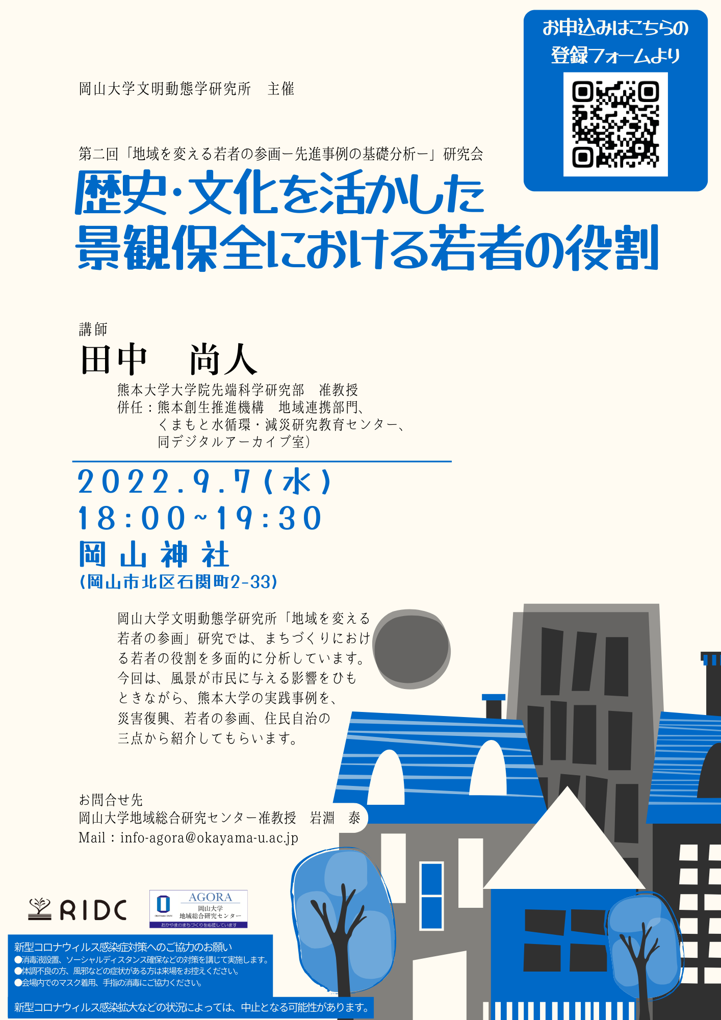 【岡山大学】第2回「地域を変える若者の参画-先進事例の基礎分析-」研究会「歴史・文化を活かした景観保全における若者の役割」(9/7木,岡山神社)