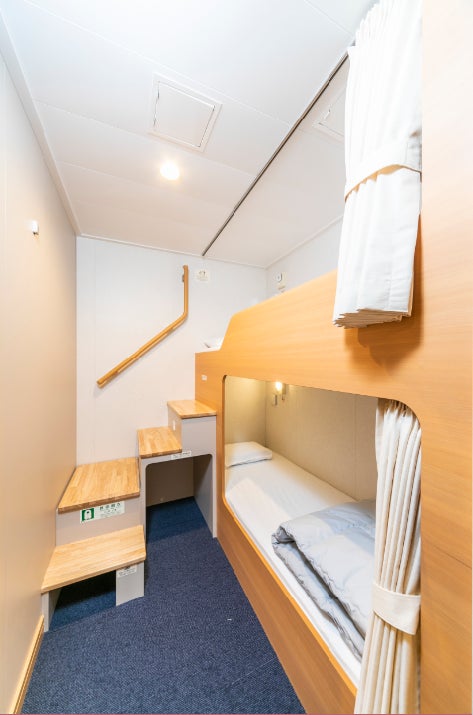 阪九フェリーの船室は初設計となる2段ベッドの階段方式を採用したスタンダード洋室。