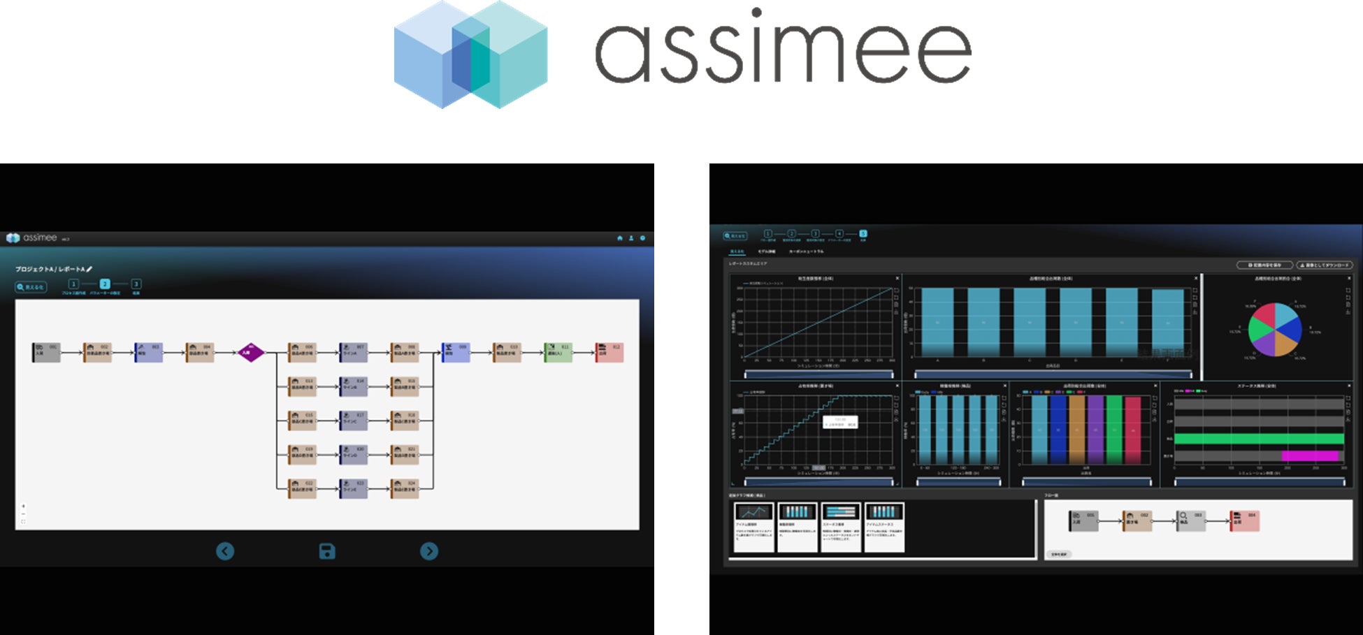 「assimee」は、ノーコードで利用でき、生成AIによるサポート機能を搭載、プログラミング経験のない現場作業者でも容易にシミュレーションを活用できる点が特長です。これにより、現場主導で、ボトルネック特定や、人員配置・仕掛かり在庫の適正化が実現可能となります。
