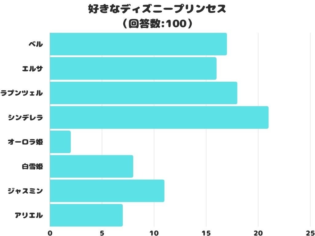100人にアンケートを行ったところ、「シンデレラ」と回答したのは全体の21.0%でした。