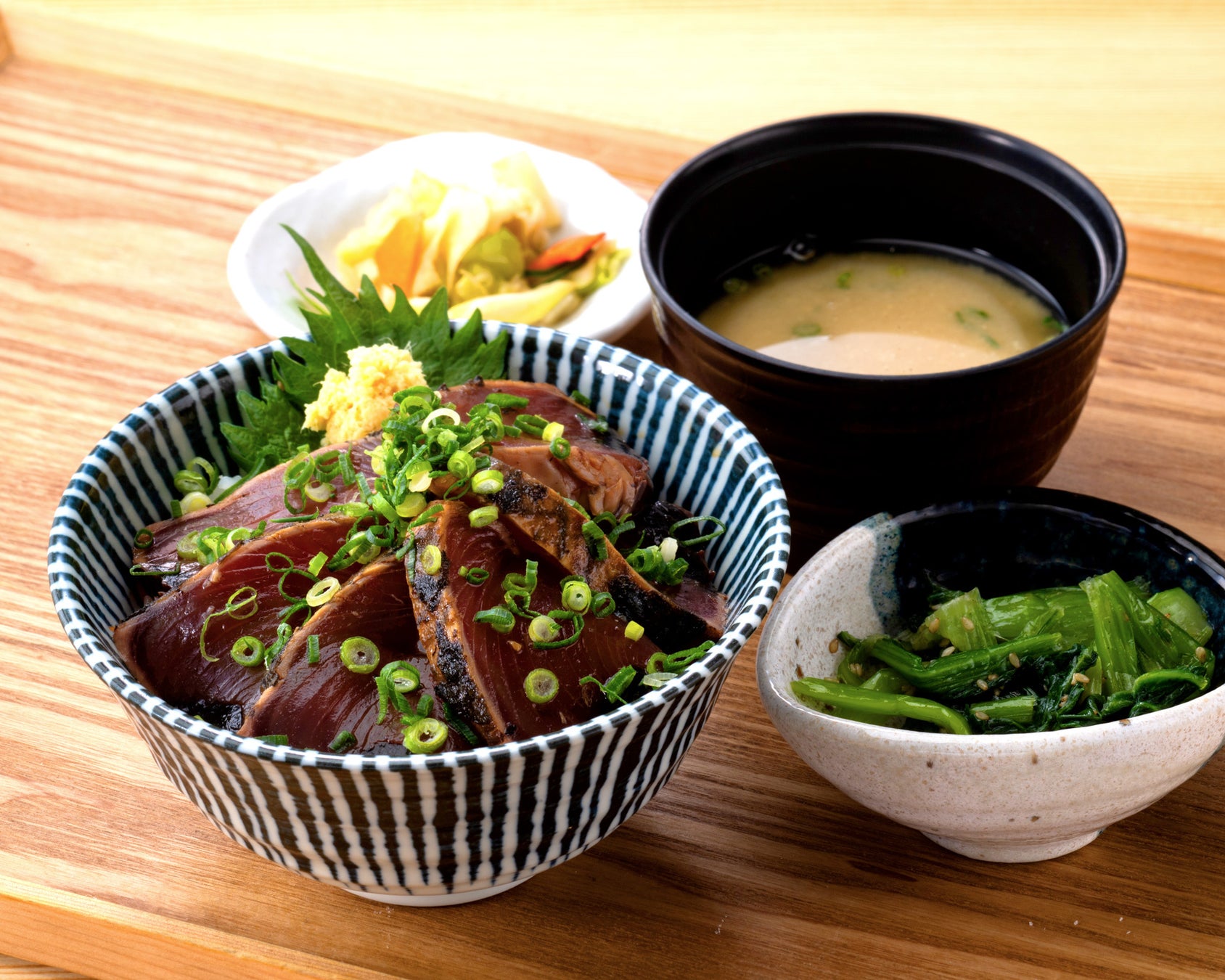 特製ダレに漬けた春鰹タタキの漬け丼〈カドクラ食堂〉
