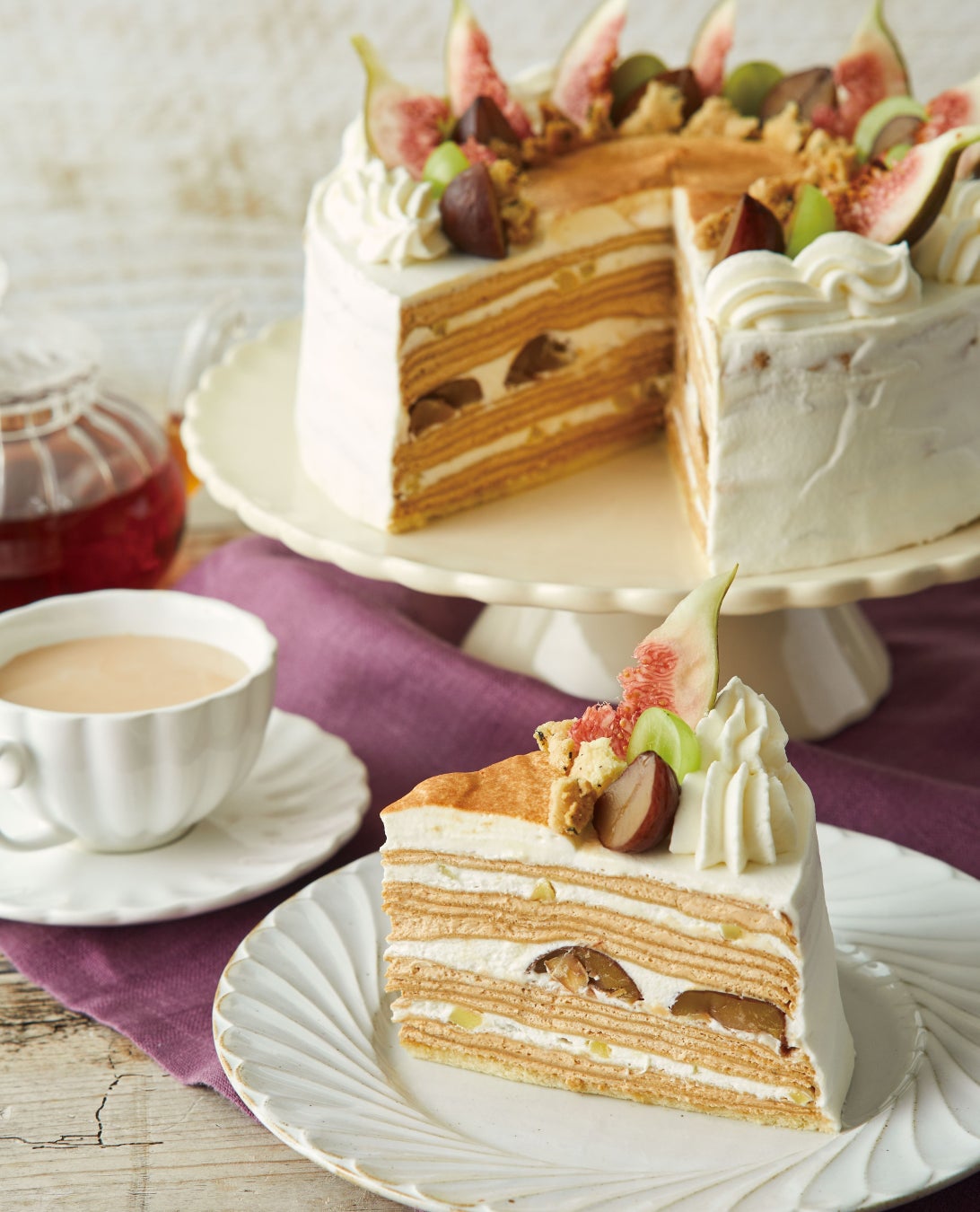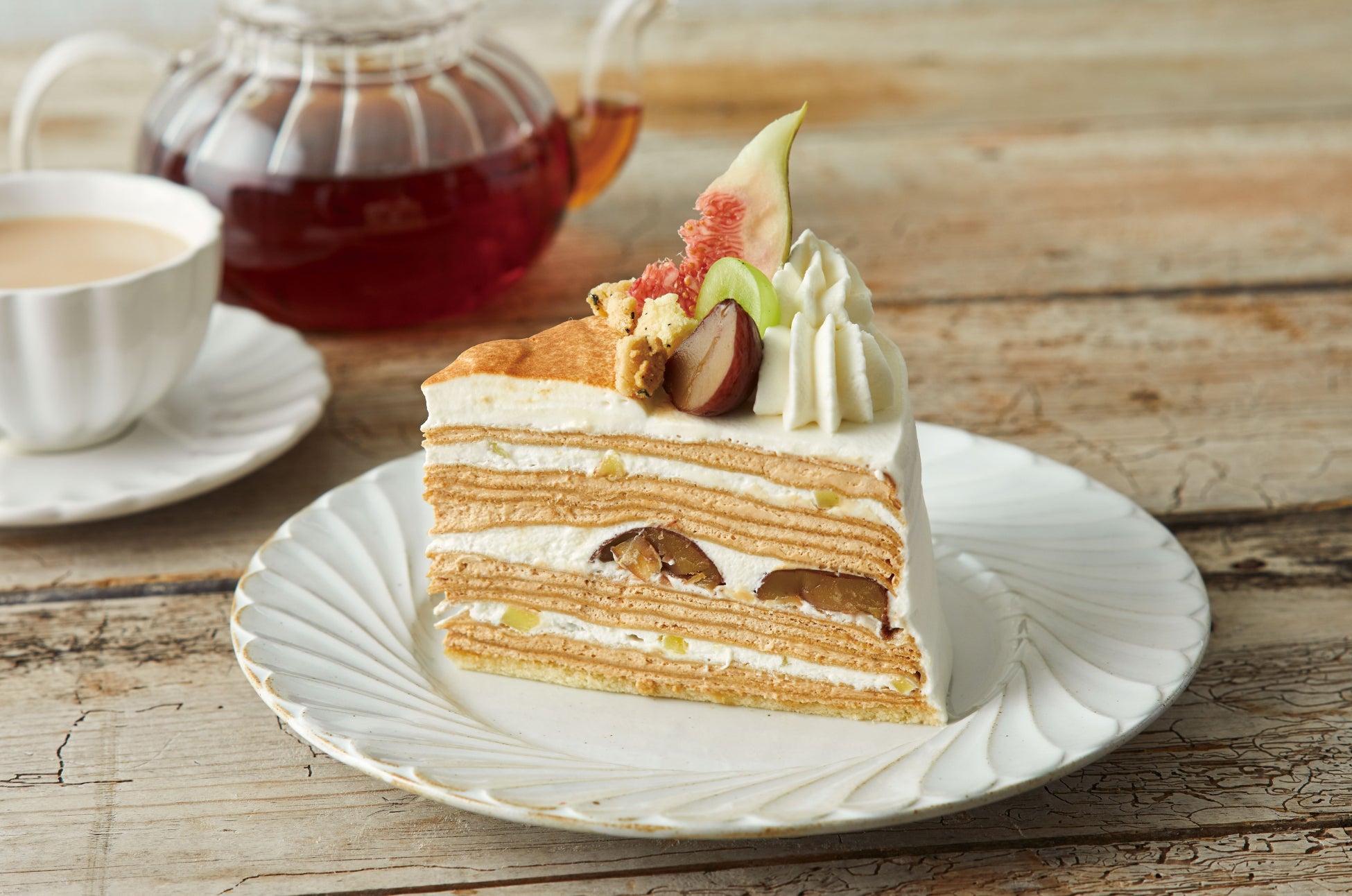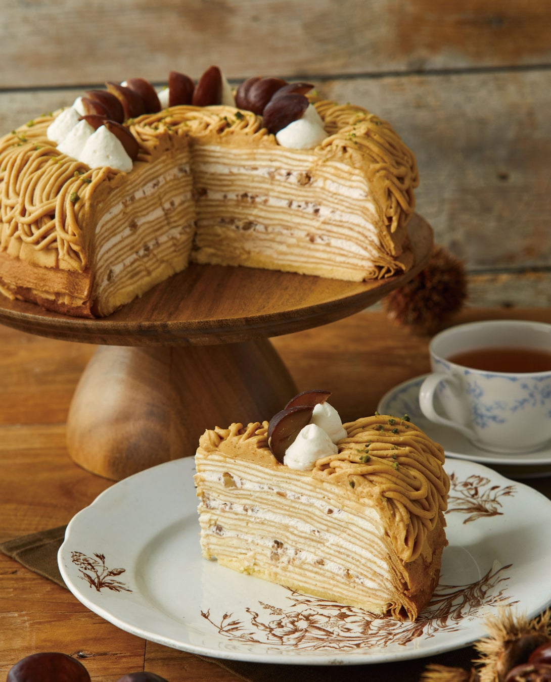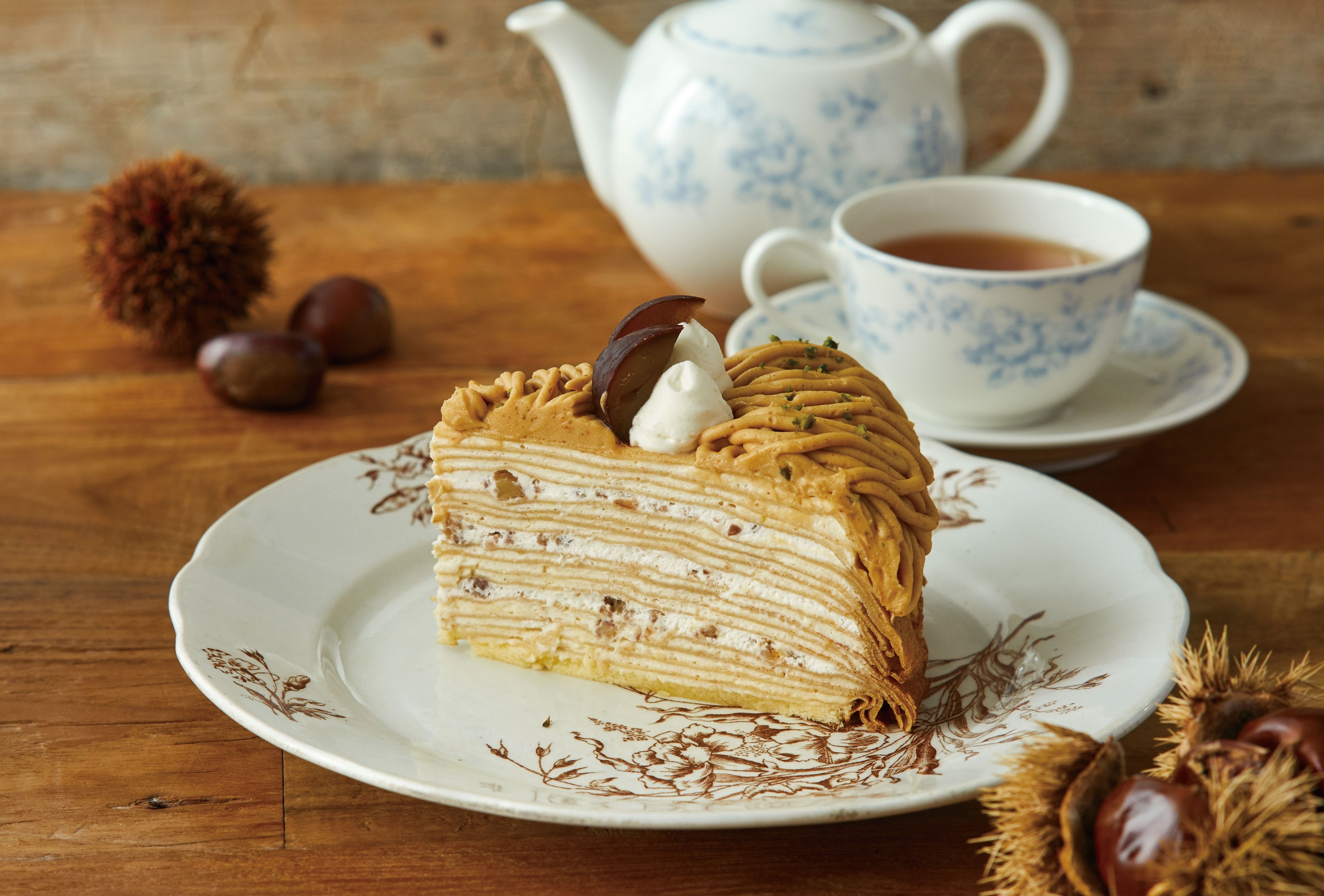 こだわりのクレープ生地を丁寧に重ねた栗がテーマのミルクレープ2種が期間を変えて登場します。