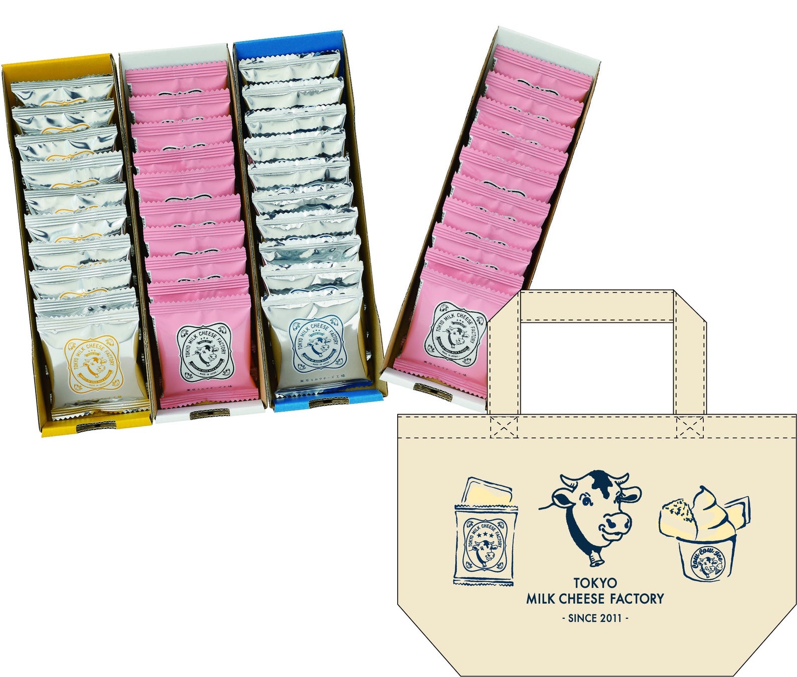 「クッキー詰合せ30枚入り1箱」「ストロベリー&マスカルポーネクッキー10枚入り1箱」、オリジナルトートバッグ付きセット