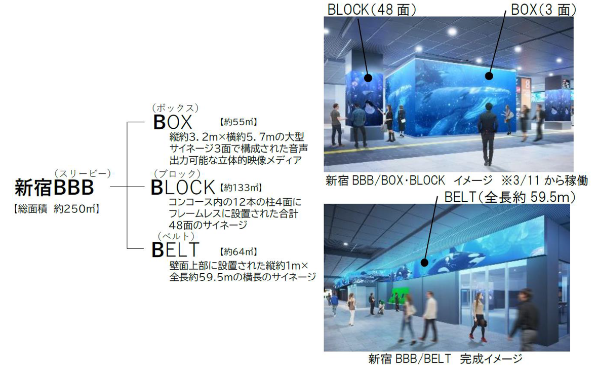 新宿駅にイマーシブなメディア空間「新宿BBB(スリービー)」が全面開業します