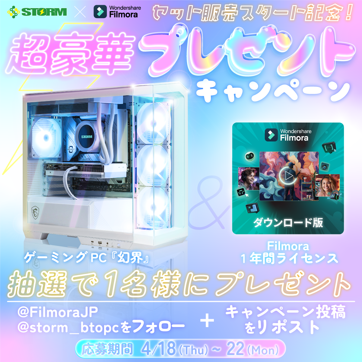 大人気ゲーミングPC「幻界 (genkai)」の STORM(株式会社アイティーシー)と動画編集ソフト「Filmora(フィモーラ)」を手掛けるワンダーシェアーソフトウェアがコラボキャンペーン実施中