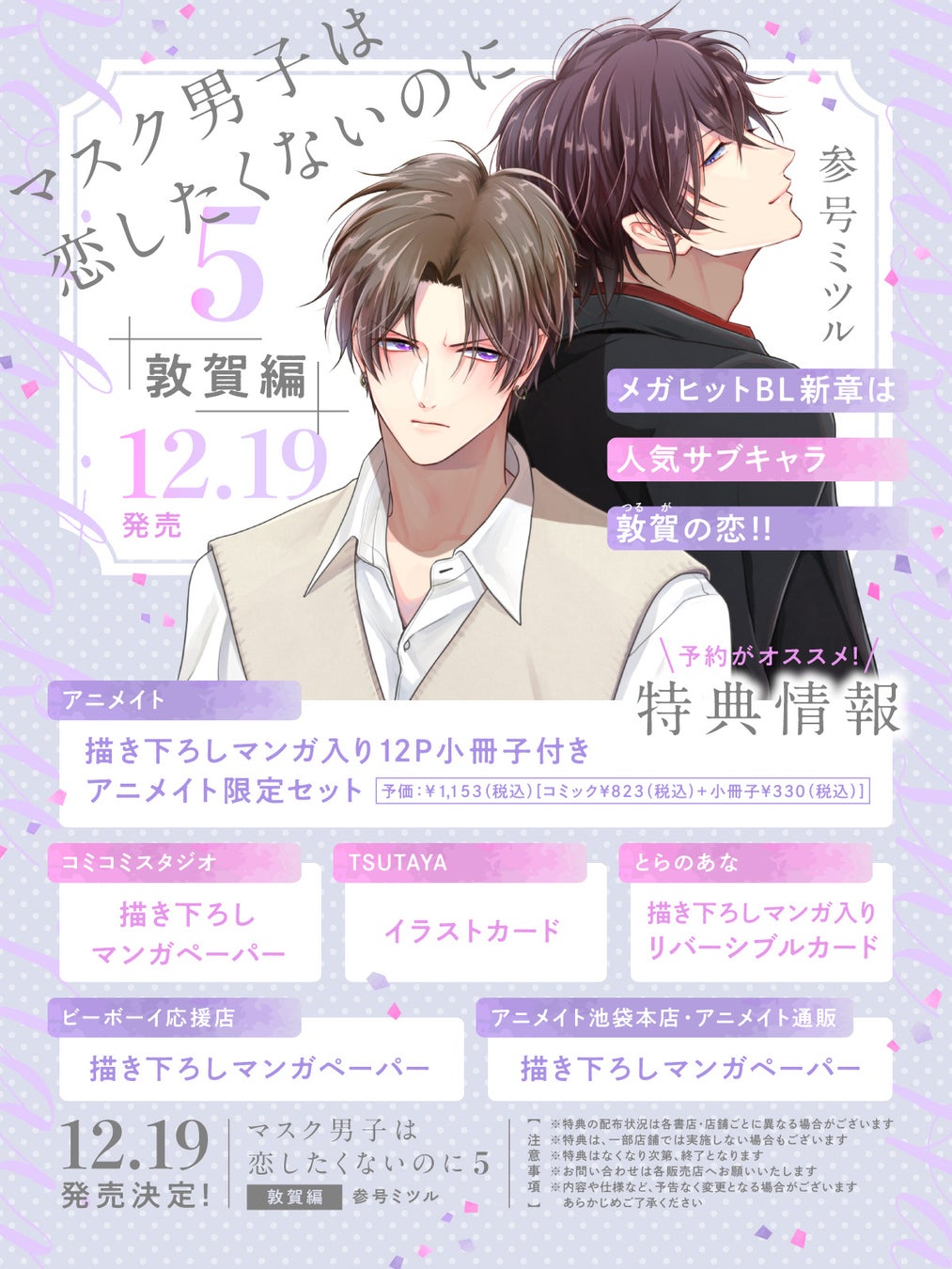 「マスク男子は恋したくないのに 5 敦賀編」(著:参号ミツル)12月19日発売決定!
