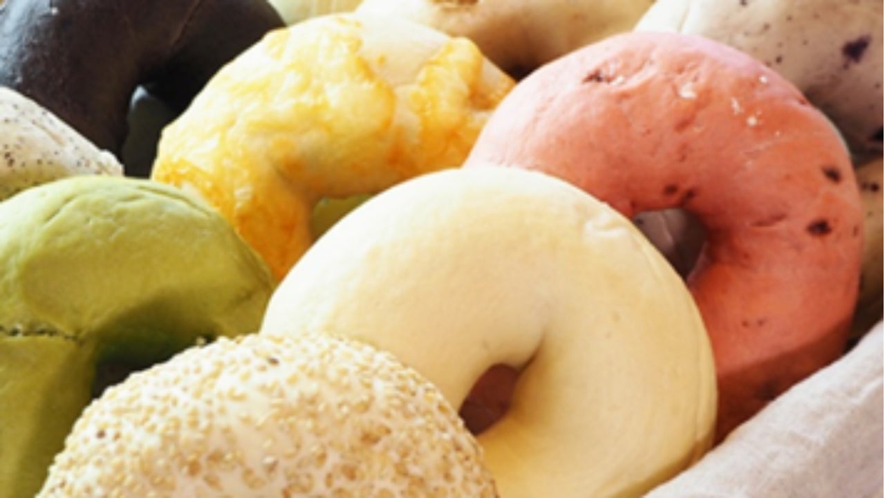 当店のベーグルは、小麦・水・練りこみ素材等のシンプルな材料から出来ています。北米を主産地とした厳選された小麦を使用していますので、噛むほどに口の中いっぱいに広がるうまみとほのかな甘さのハーモニーが楽しめます。