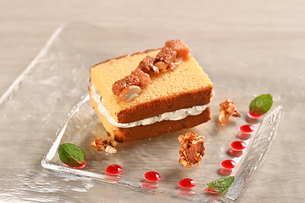 カステラのふんわり感とアイスクリームのようなひんやりとしたクリームのマリアージュをお楽しみいただける一皿です。