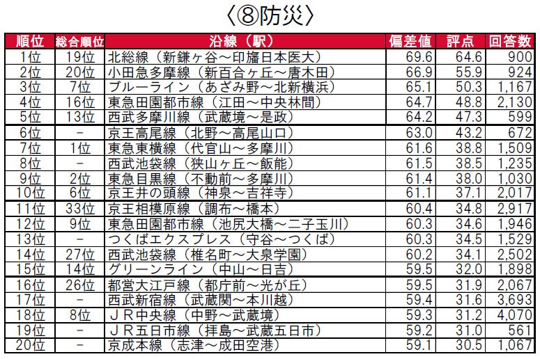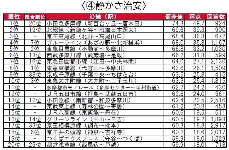 - 街の住みここち沿線ランキング2022<首都圏版> 因子別評価 TOP20 ②