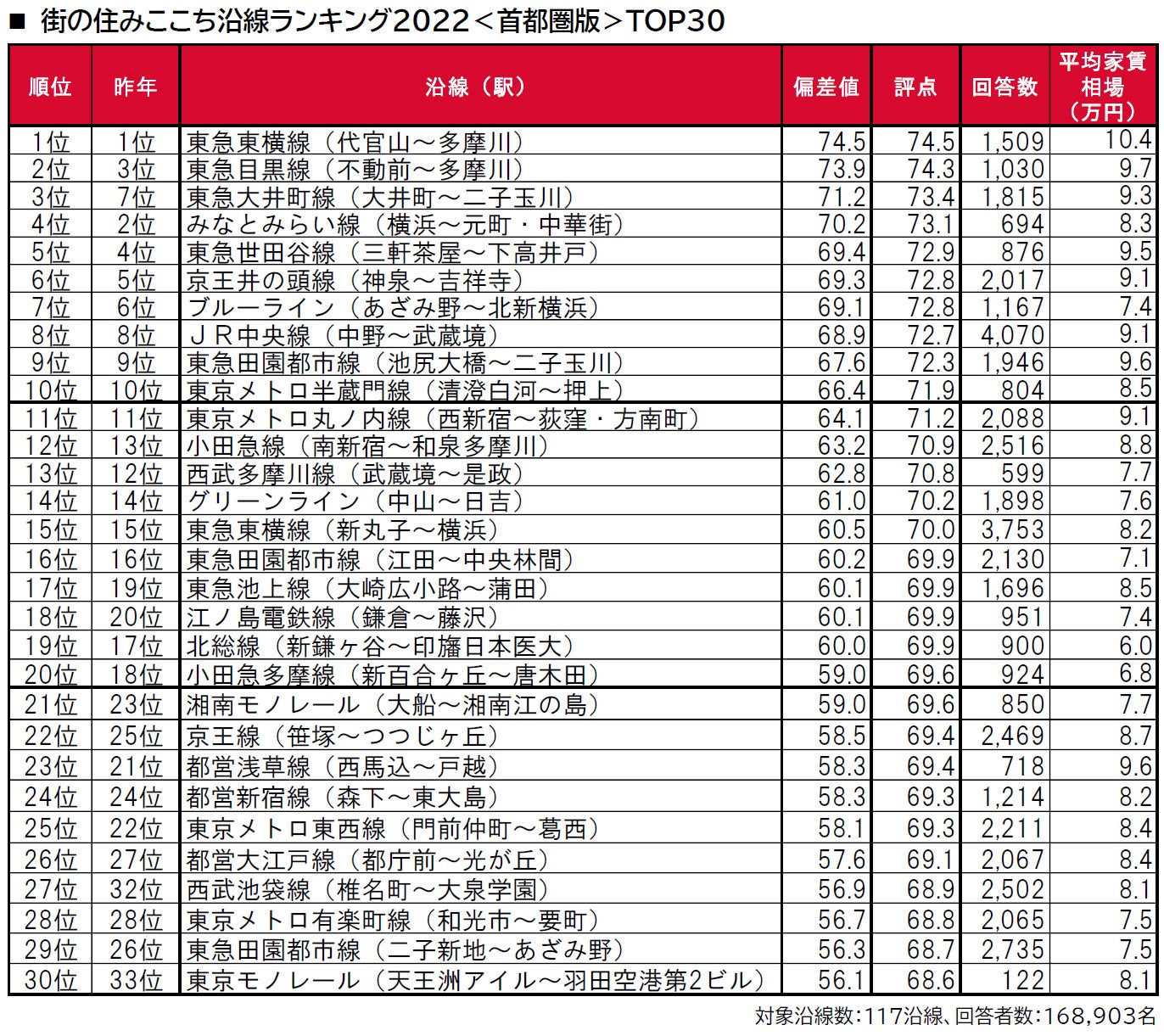 - 街の住みここち沿線ランキング2022<首都圏版>上位の分析 <総合1~3位>