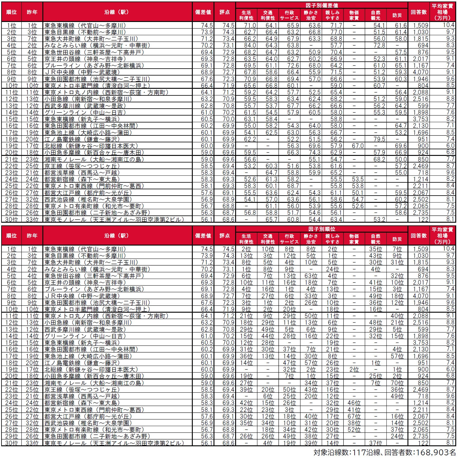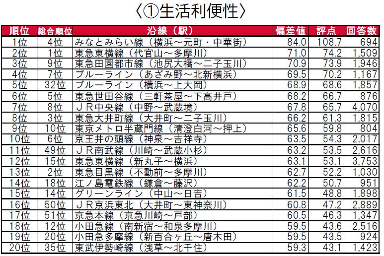 - 街の住みここち沿線ランキング2022<首都圏版> 因子別評価 TOP20 ①