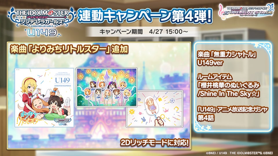4月27日(木)15:00よりデレステにて、第1話ED「よりみちリトルスター」の追加などTVアニメ「U149」連動キャンペーン第4弾を開催!